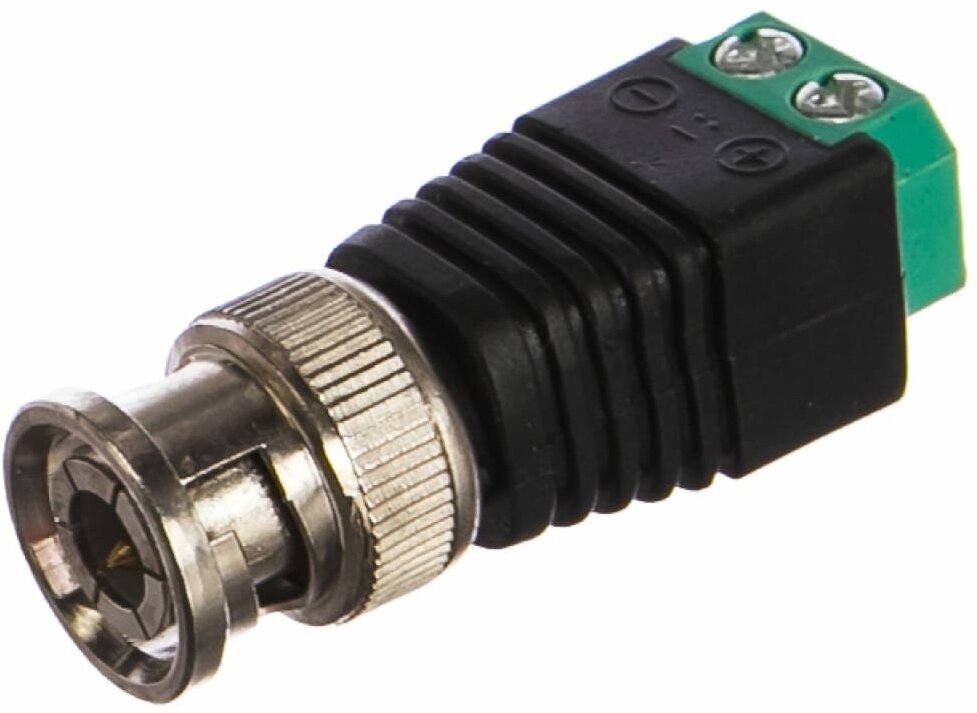 Коннектор (разъём интерфейсный), соединитель для коаксиального кабеля. Разъём предназначен для подключения видеокамер к устройствам приёма/передачи через кабели различного типа. Использовать данный разъём очень просто — зачистите провод, установите его в пазы и затяните винты. Клеммная колодка надёжно зафиксирует проводник и обеспечит прекрасный контакт