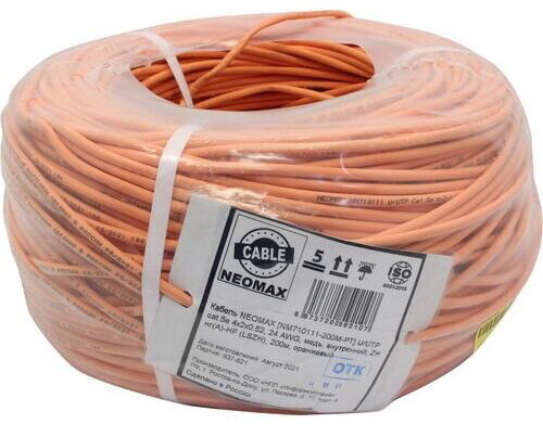 Витая пара NeoMax NM710001 представляет собой одножильный проводник из меди который соответствует категории 5e. Используется для передачи цифровых и аналоговых сигналов. Витая пара NeoMax имеет изоляцию представленную в оранжевом цвете.