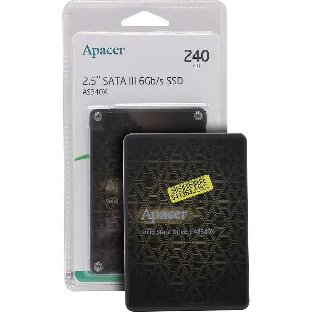 Накопитель SSD 2.5'' Apacer AS340X 240GB SATA 6Gb/s 3D NAND TLC 550/520MB/s IOPS 38K/75K MTBF 15M 7mm Retail AP240GAS340XC-1