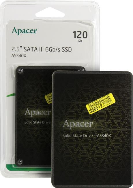 Накопитель SSD 2.5'' Apacer AS340X 120GB SATA 6Gb/s 3D NAND TLC 550/500MB/s IOPS 38K/75K MTBF 15M 7mm Retail AP120GAS340XC-1