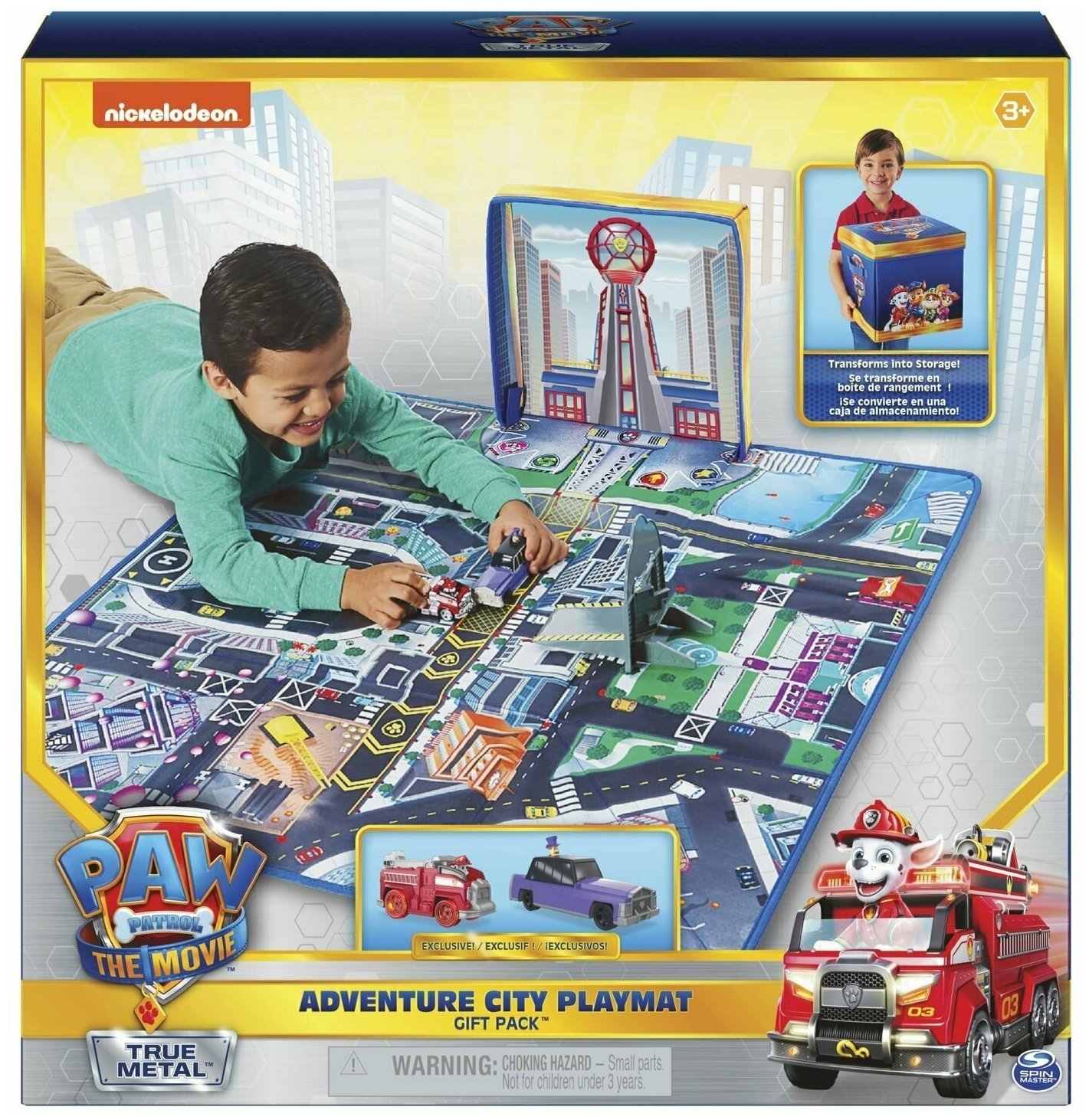 - ИГРОВОЙ КОВРИК PAW PATROL TRUE METAL: Установите коврик в игровой комнате, спальне или любой другой комнате для увлекательной игры в настоящие металлические транспортные средства! Коврик имеет распечатанную карту города приключений и имеет размеры 91 см х 91 см.