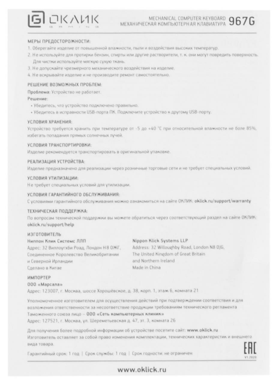 | Производитель | Oklick |