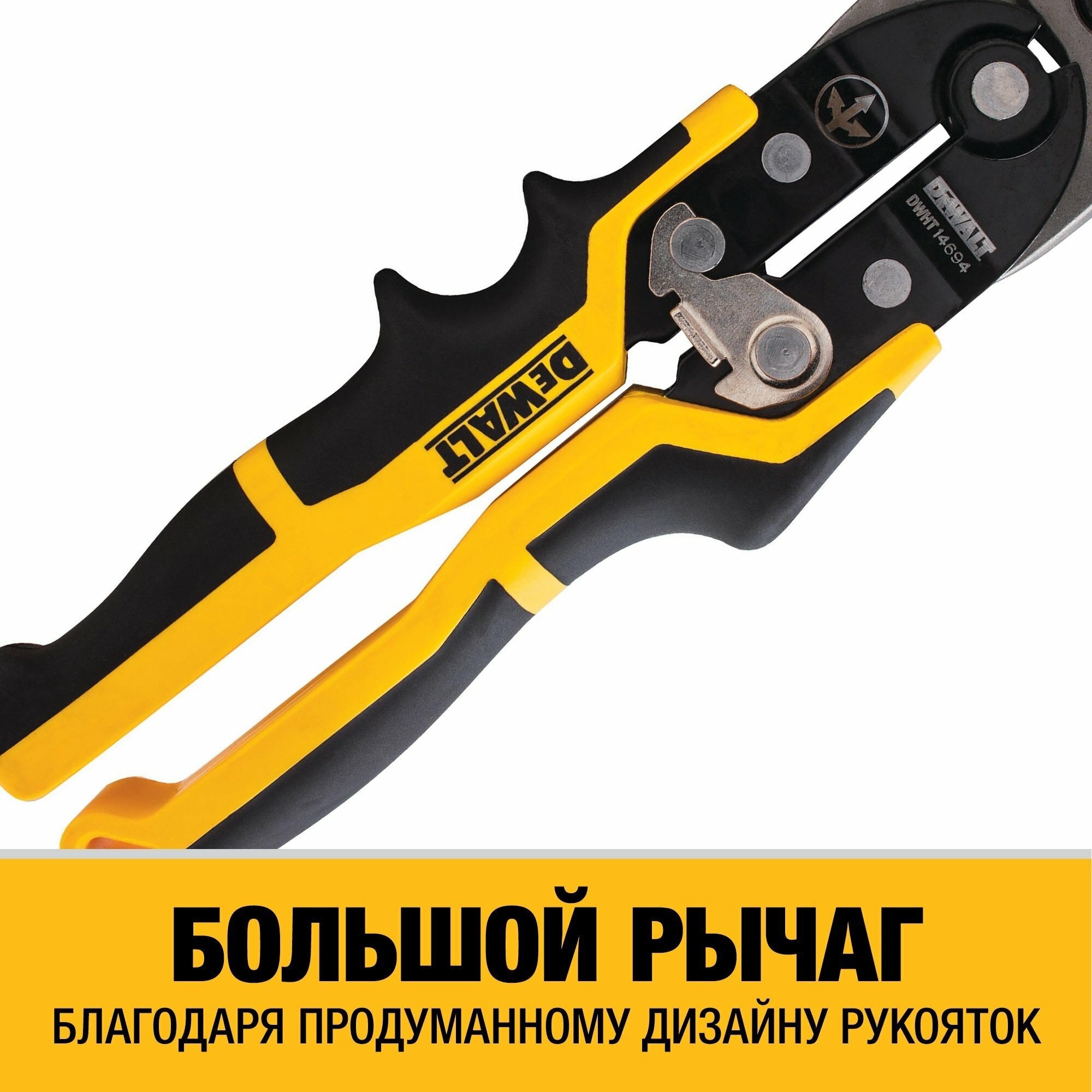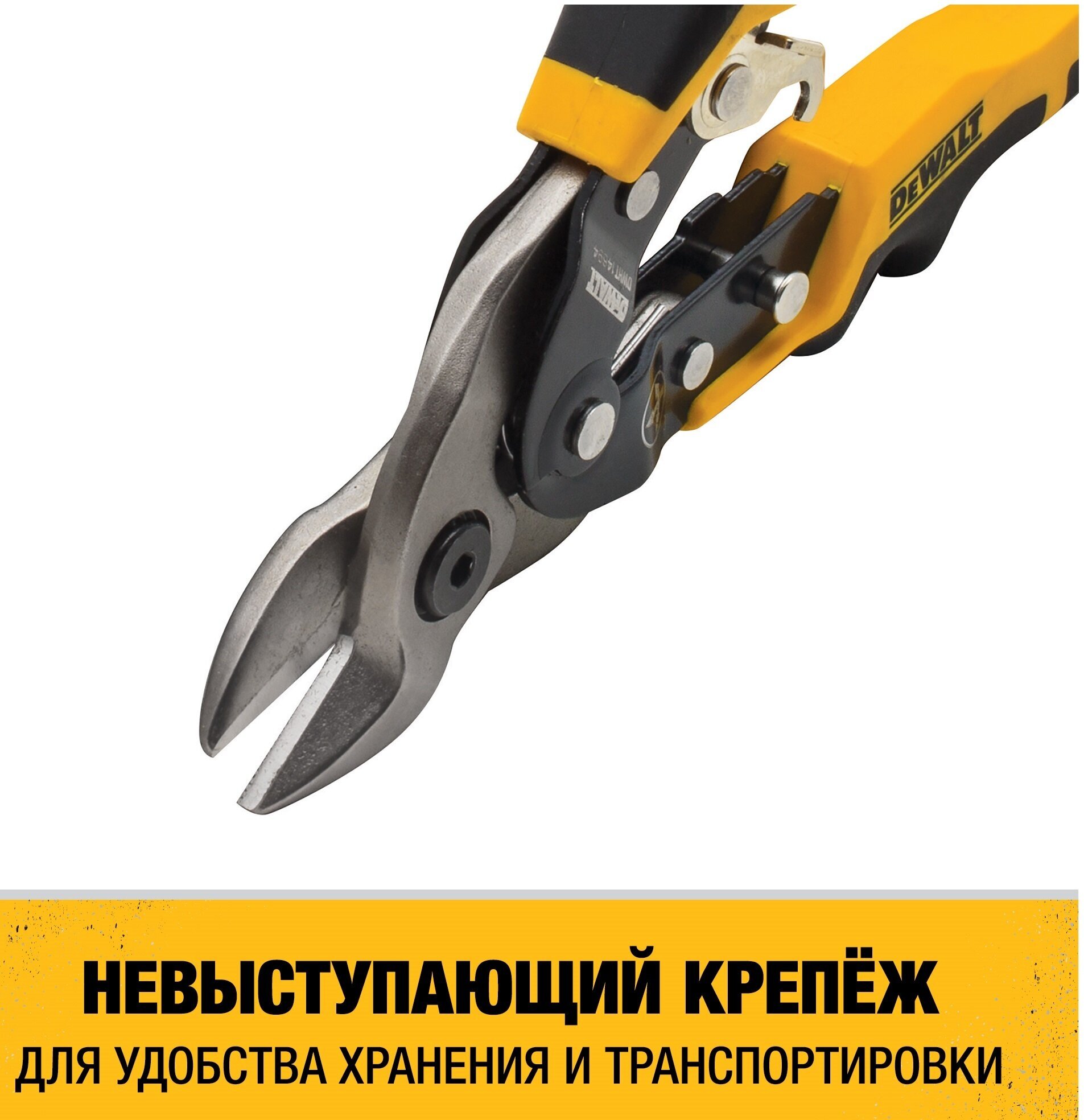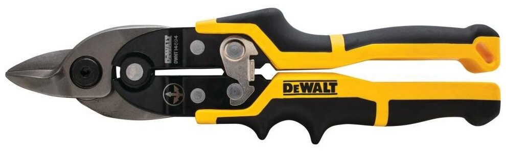 Ножницы по металлу DEWALT BULLNOSE с короткими губками. Губки изготовлены ковкой их хромованадиевой стали. Эргономичная конструкция уменьшенным необходимым для работы разведением рукояток (сертифицирована US ERGO) для уменьшения усталости и риска получения травм, обеспечивают дополнительный контроль и комфорт в работе. Шкала на губках для точной резки. Новая конструкция фиксатора рукояток для удобства открывания/закрывания одной рукой