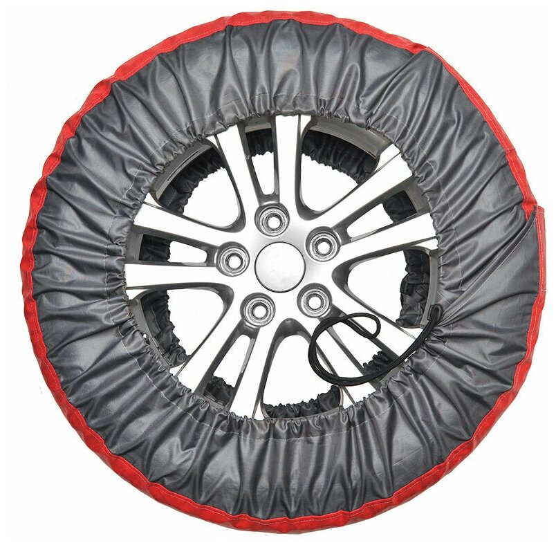 Чехлы Премиум выполнены из двух видов контрастной ткани, отличающихся по плотности. Кордовая часть чехлы выполнена из уплотненной ткани Оксфорд 600D красного цвета. Высокая плотность ткани позволяет увеличить срок использования чехла при хранении и транспортировке даже шипованной резины. Ручка выполнена из материала Стропа. Надежная крестовая отстрочка выдержит высокие нагрузки, при транспортировки колес максимального радиуса. Чехол оснащен удобным карманом для хранения крепежных болтов или необходимой документации. Размер чехлов регулируется при помощи фиксаторов шнуров и широкой липучке-застежки.Подходят для диаметра от 595 мм до 691 мм.Убедитесь, что Ваши размеры колеса подойдут под данный диаметр!