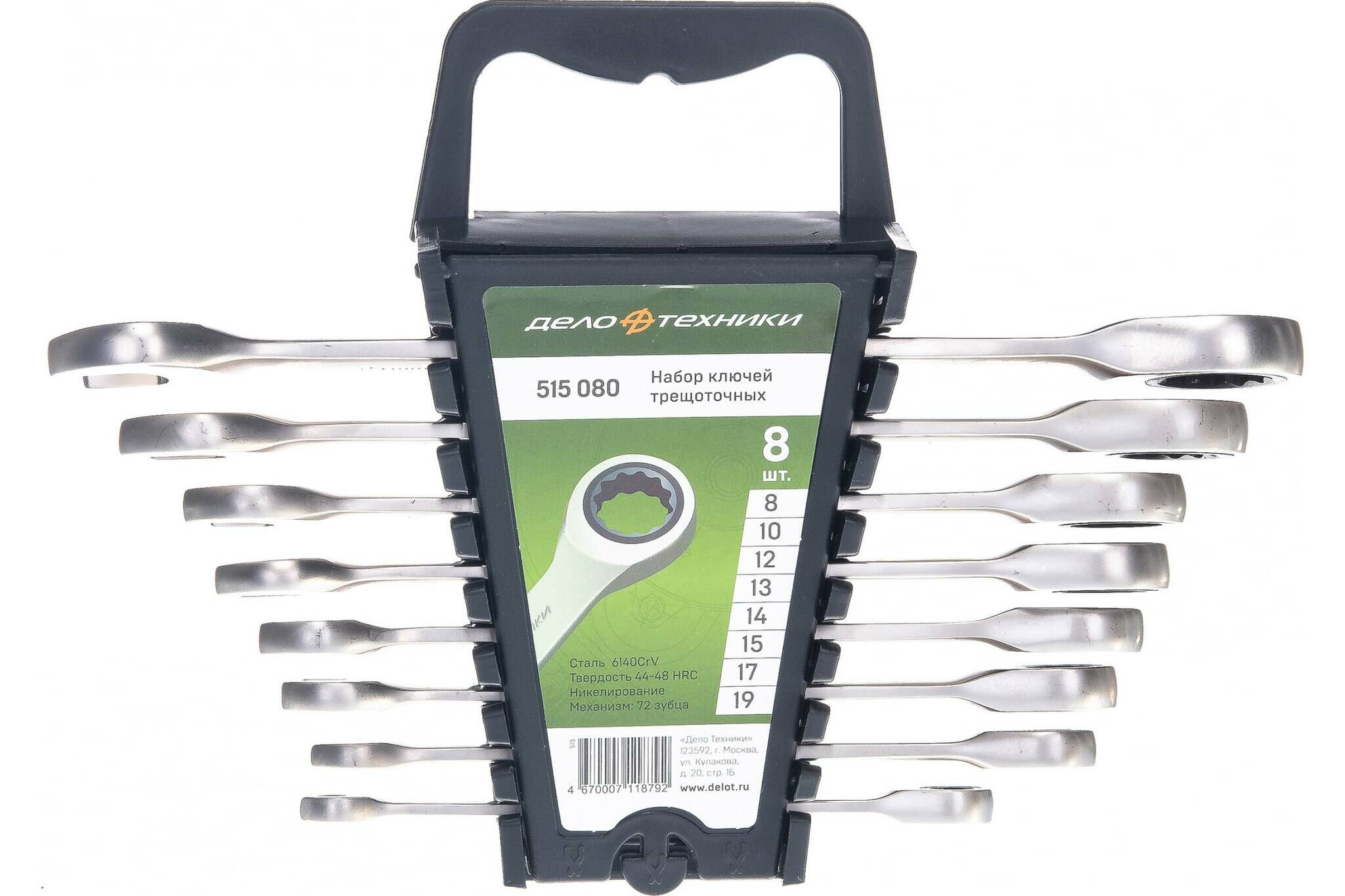 Дело Техники с трещоткой 8 шт. (зелено-черный)