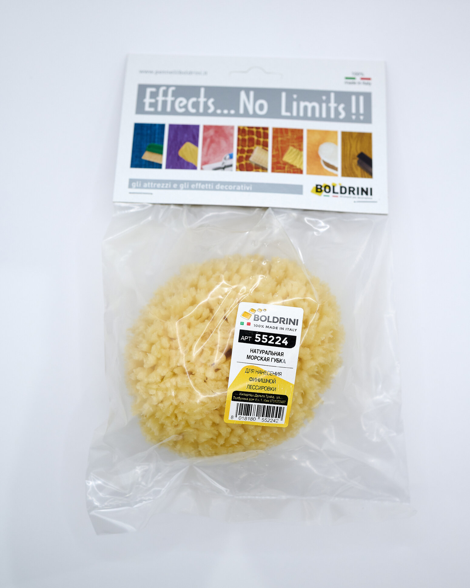 Губка структурная натуральная морская Boldrini. Ширина губки: 160 мм. Длина губки: 160 мм. Назначение: для нанесения жидких декоративных покрытий методом тампования. Благодаря особой пористой структуре, впитывает не так сильно, как синтетические губки, что позволяет экономить материал.