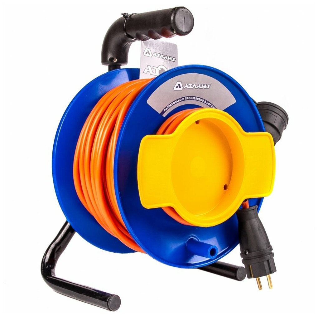 Силовой удлинитель на садовой катушке применяется в основном на садовых и дачных участках, для подключения газонокосилок, снегоуборочной техники и другого инструмента. Устройство представляет собой пластиковую катушку с намотанным проводом типа ПВС, также на корпусе располагается устойчивая подставка и специальная рукоятка для удобства переноски удлинителя.