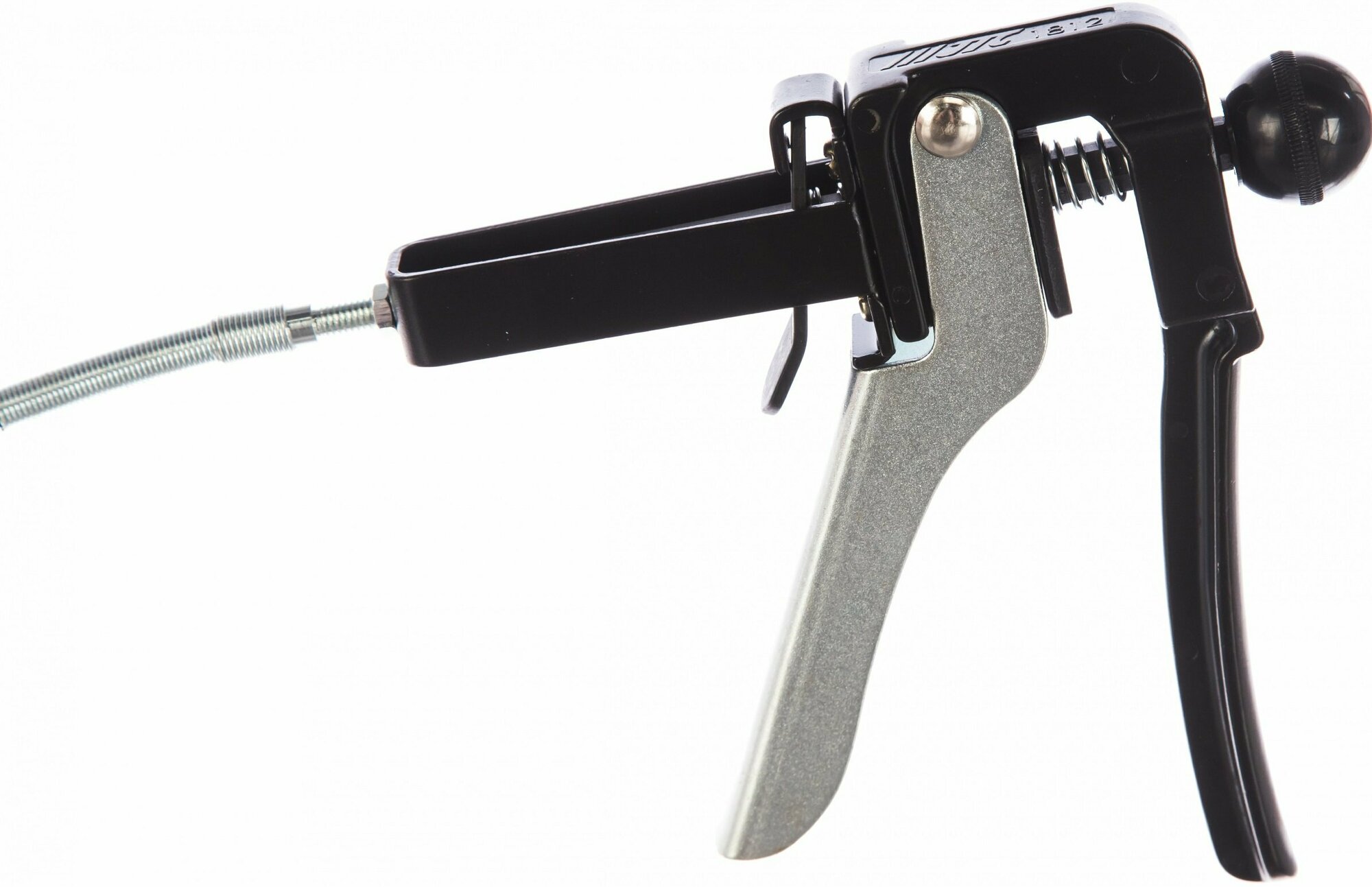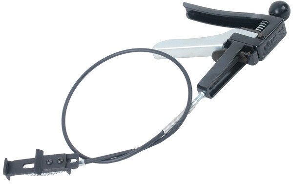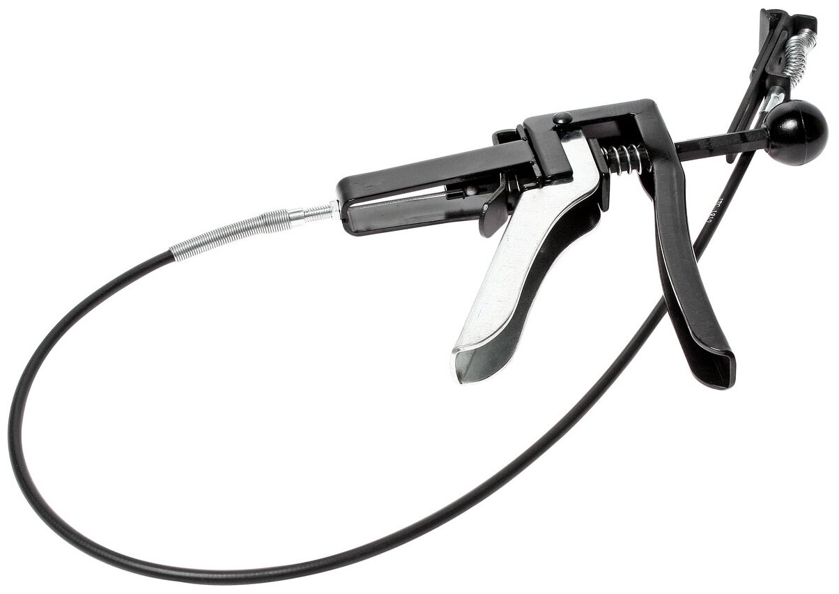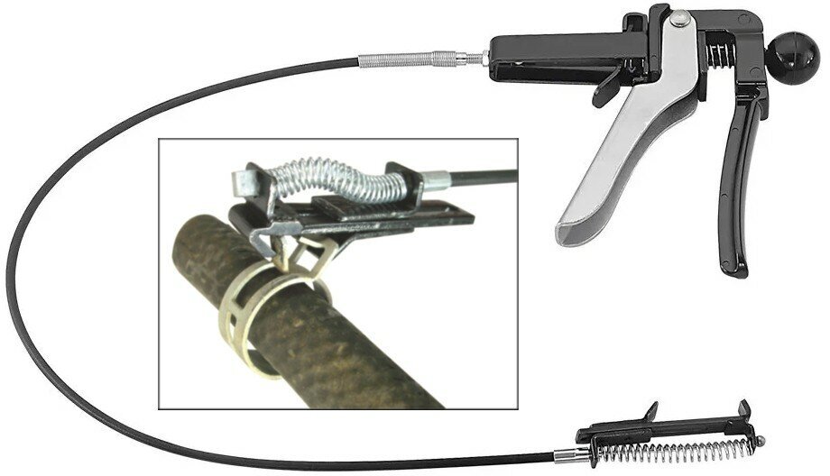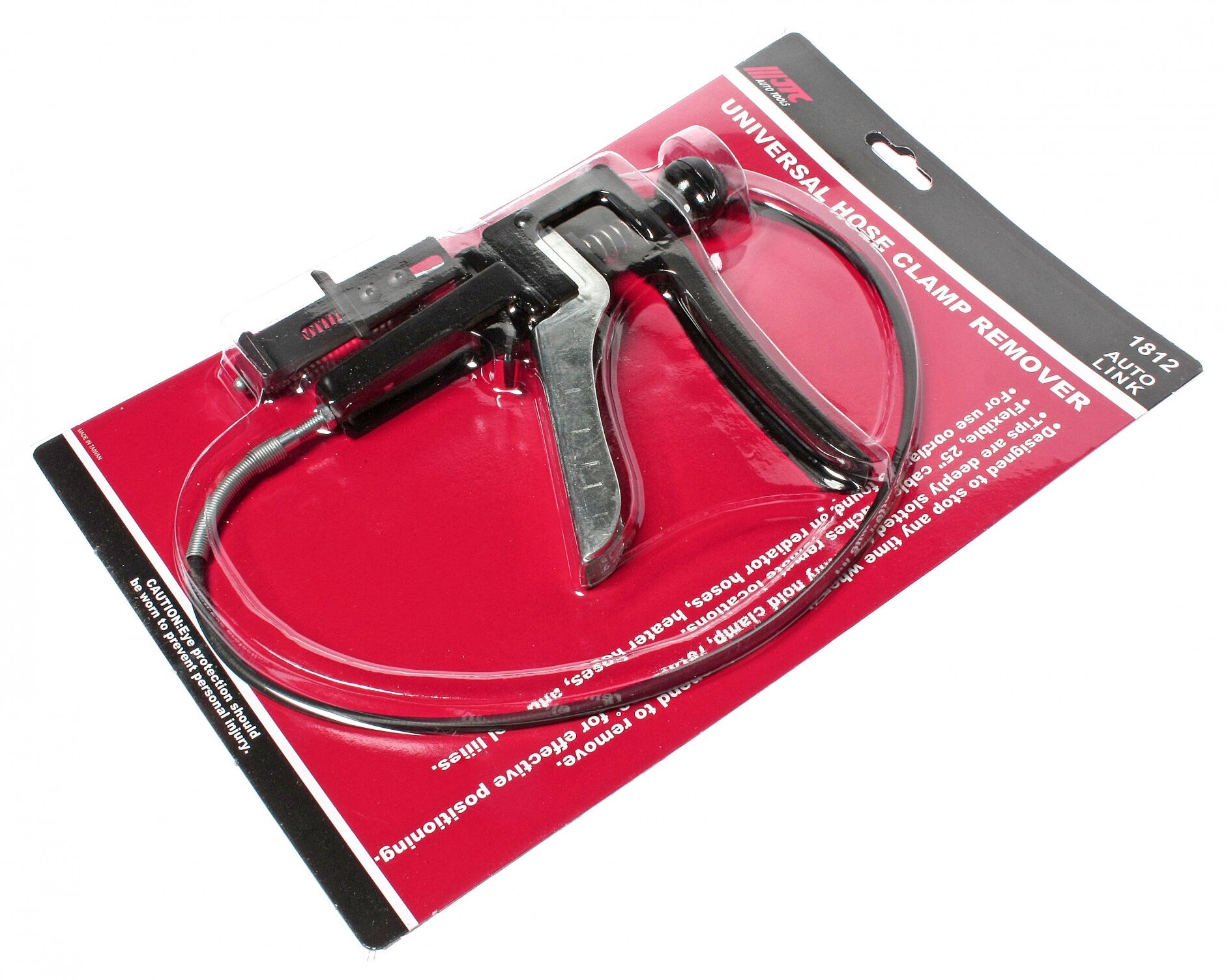 Съемник JTC-1812. Специально создан для легкого снятия хомутов с топливного трубопровода, патрубков системы охлаждения и др. Гибкий и тонкий привод длиной в 600 мм обеспечивает возможность работы в наиболее труднодоступных местах. Запатентован. Особенность патента Возможность регулировать уровень зажатия с помощью винта на ручке инструмента. Назначение JTC-1812: Демонтаж хомутов. Порядок работ Установите фиксатор на хомут. Выжмите курок. Фиксатор на конце троса начнет сжимать хомут. Комплектация JTC-1812: Съемник с гибким приводом - 1 шт.