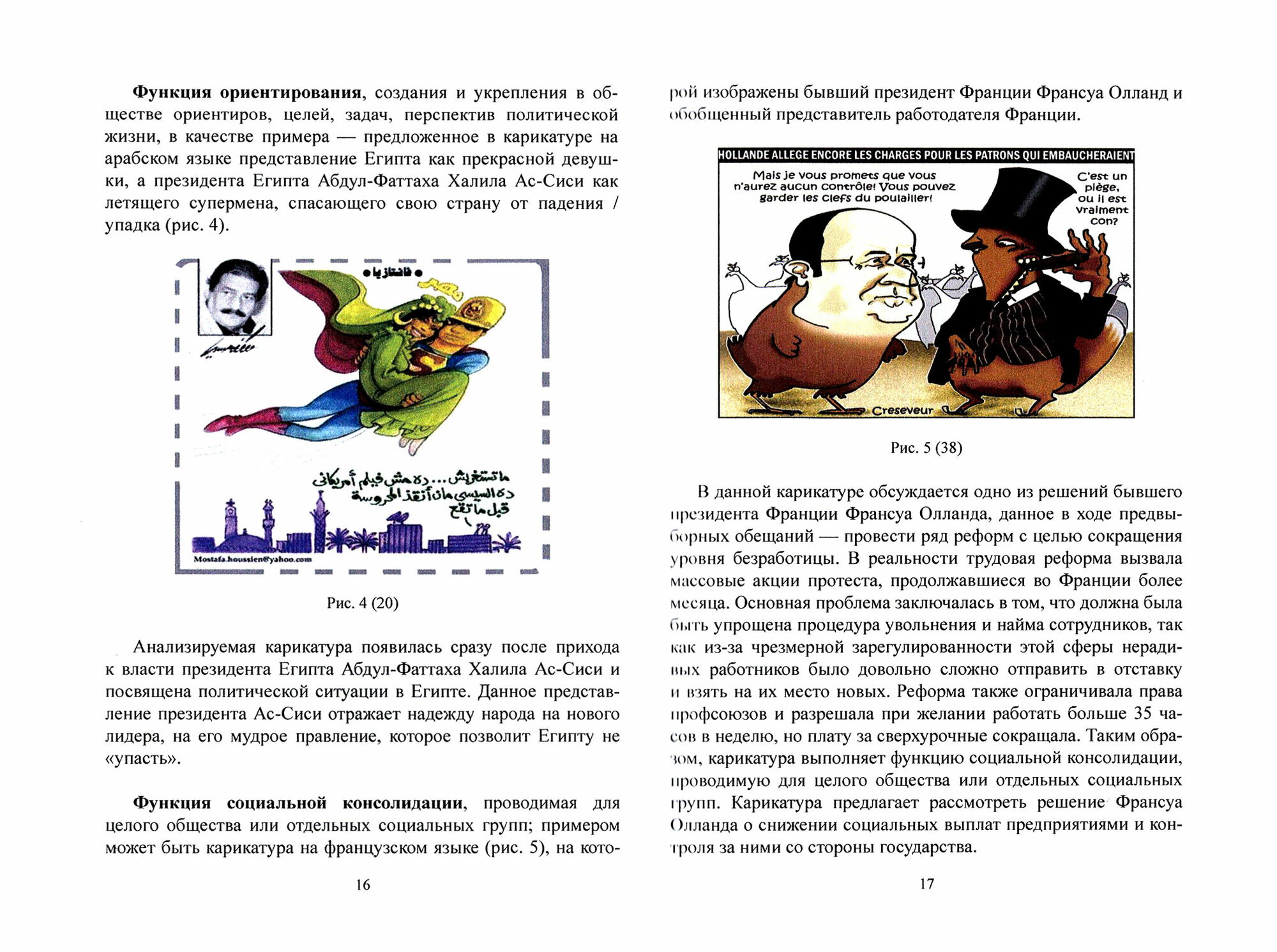 Монография представляет собой сопоставительный анализ креолизованного текста политической карикатуры на арабском и французском языках. В исследовании раскрывается смысл понятия креолизованный текст и предлагается рассмотрение его компонентов на примерах политической карикатуры. В фокусе внимания автора находятся культурно-специфические черты креолизованного текста политической карикатуры на арабском и французском языках на вербальном и невербальном уровнях. Исследование показало универсальный характер данного феномена и наличие общих черт на уровне создания образности, представленности и реализации семиотических кодов, использования лексических единиц и грамматических средств.