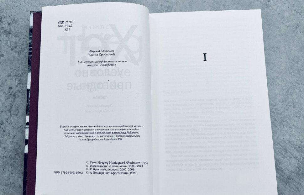 Интересная деталь -- главного героя, как и в нескольких других романах Хёга, зовут Питер.