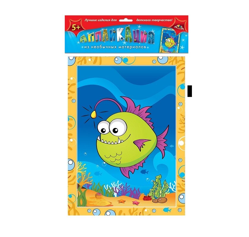 Набор для творчества. Аппликация из необычных материалов. В наборе лист картона с цветным рисунком размером 26 х 35 см. Для создания аппликации используются декоративные фигурные элементы с клеевым слоем. Элементы высечены из фетра, мягкого пластика, картона, а также гелевые наклейки в форме кружков и звездочек. Упаковка - ПЭТ пакет с картонным европодвесом.