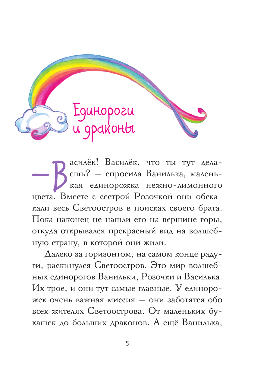 На Рифе мечты сбываются желания, а Лунное озеро предсказывает будущее! Это мир Ванильки, Розочки и Василька - трех маленьких единорогов с особым даром... "Я принесу тебе удачу", - обещает Розочка. "Я твой лучший друг", - шепчет Ванилька. А Василёк только печально вздыхает. Он тоже хочет открыть в себе хоть какую-нибудь магическую способность! В поисках своей судьбы Василёк отправляется в смелое приключение!