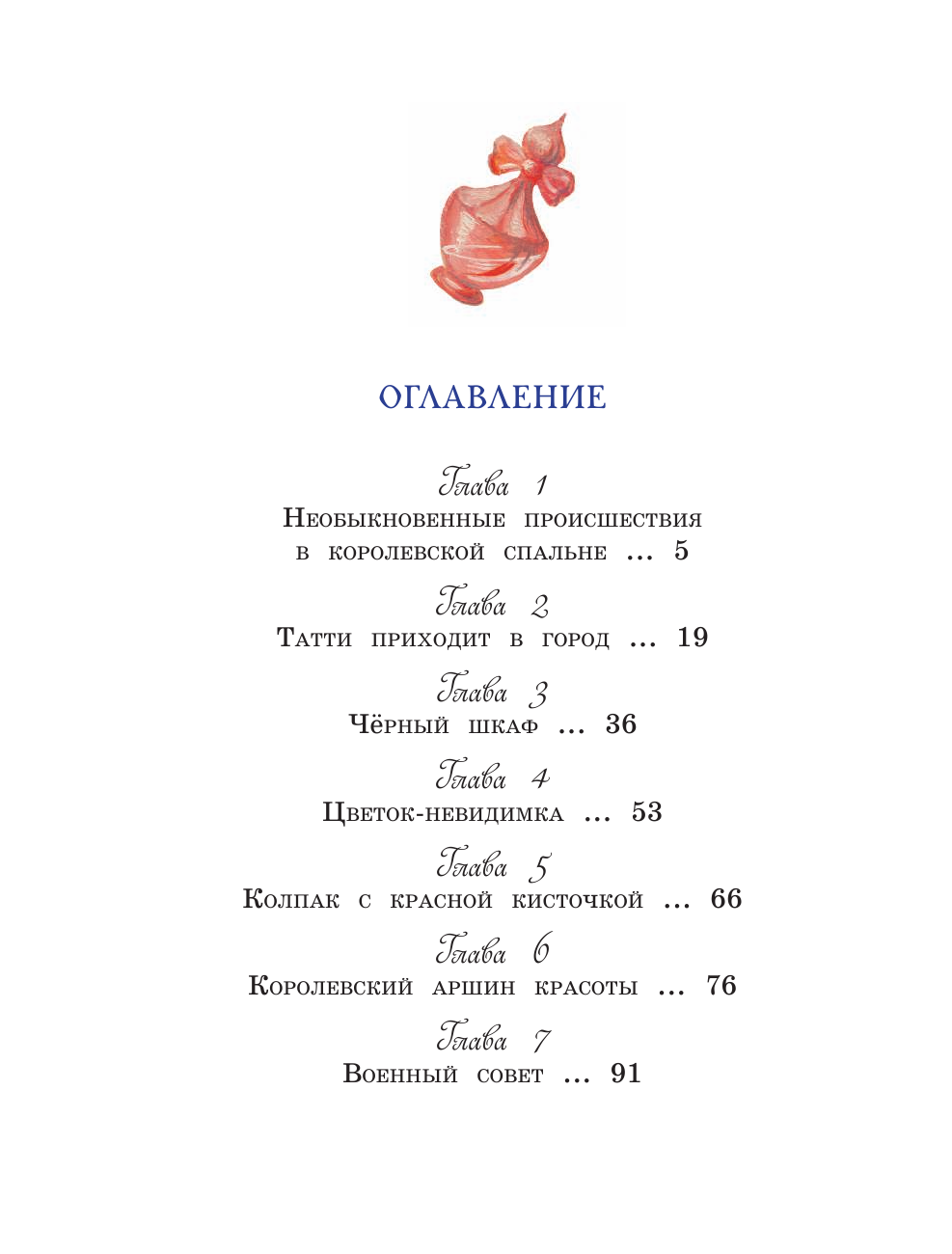 Сказочная повесть Софьи Прокофьевой о необычном королевстве, волшебных колпаках и девочке по имени Татти, в руках которой спасение короля и его двора, публикуется полностью и сопровождается замечательными иллюстрациями известной российской художницы Анны Власовой.
