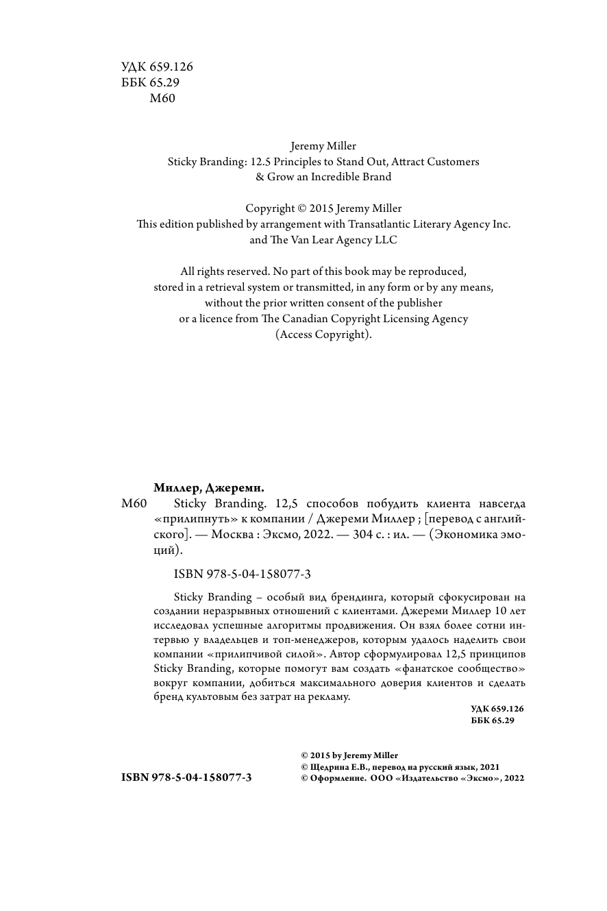 Sticky branding. 125 способов побудить клиента навсегда "прилипнуть" к компании (Миллер Джереми, Миллер Дональд); ООО "Издательство "Эксмо", 2022