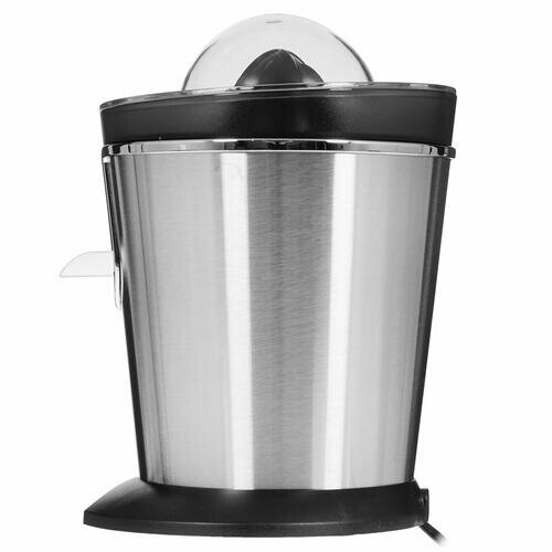 Корпус устройства выполнен из нержавеющей стали — прочного материала, который устойчив к коррозии. Мощность составляет 125 Вт — этого достаточно для быстрого получения большого количества сока. Другие технические параметры модели:
