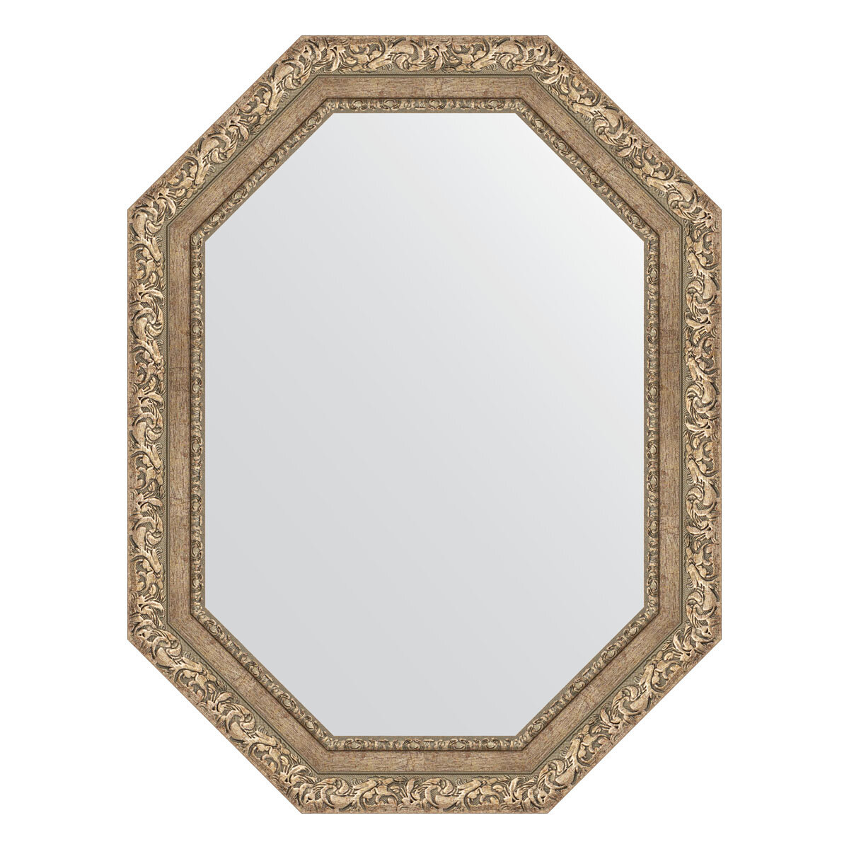 Зеркало настенное Polygon EVOFORM в багетной раме виньетка античное серебро 65х85 см для гостиной прихожей спальни и ванной комнаты BY 7151