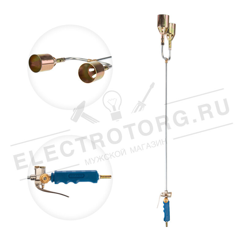 Горелка кровельная – газовая горелка с 2 соплами, вентилем и рычагом для нагрева битумных и иных материалов при проведении гидроизоляционных работ, обжига и очистки металлических поверхностей.