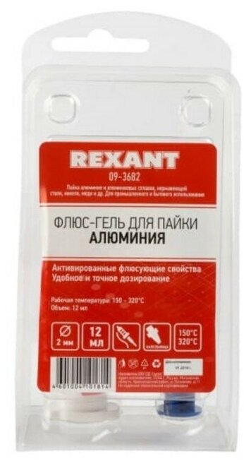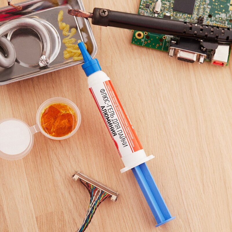Флюс-гель для пайки Алюминия 12 мл REXANT в шприце предназначен для пайки алюминия и алюминиевых сплавов. Для промышленного и бытового использования. После пайки образует устойчивое антикоррозийное покрытие.