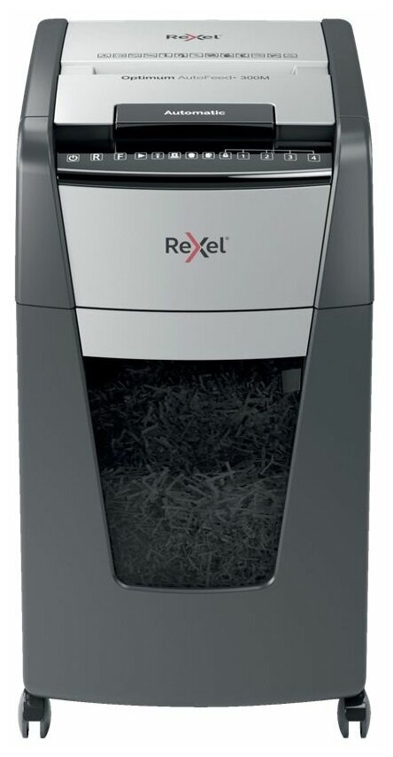 Шредер Rexel Optimum AutoFeed 300M черный с автоподачей (секр.P-5)/фрагменты/300лист./60лтр./скрепки/скобы/пл.карты