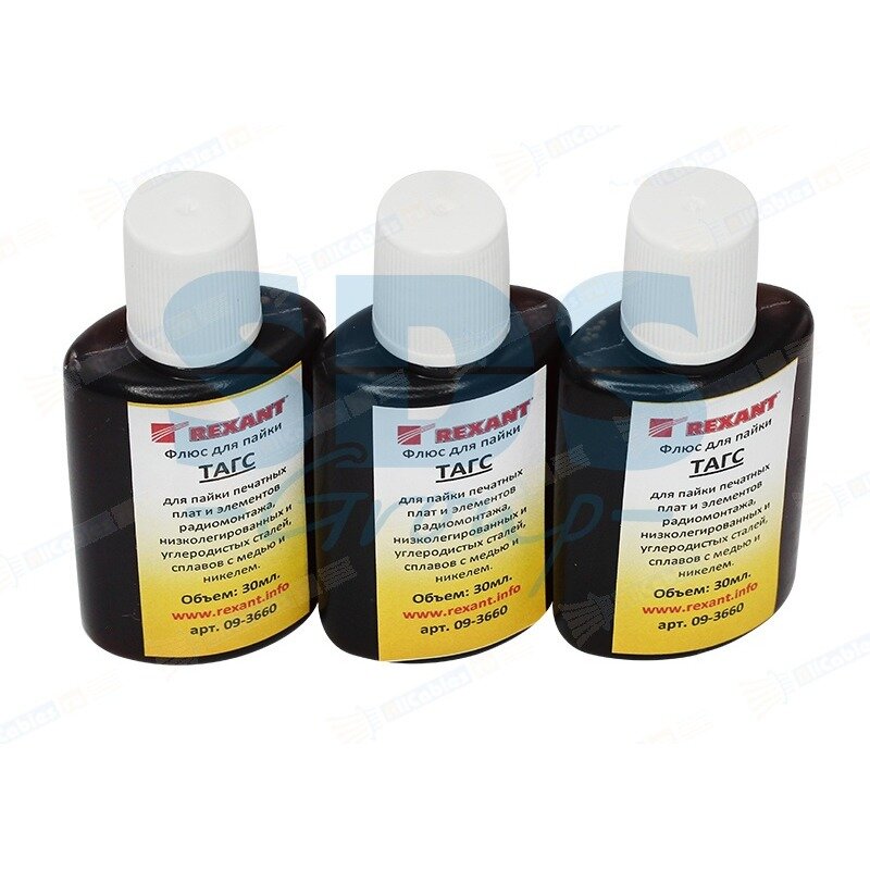 Флюс для пайки ТАГС 30мл REXANT предназначен для удаления оксидов с поверхности под пайку, улучшения растекания жидкого припоя при пайке печатных плат и элементов радиомонтажа, а также низколегированных и углеродистых сталей, сплавов с медью и никелем.