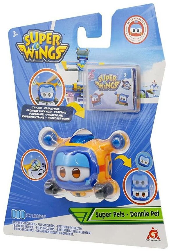 ! Новый член команды Супер Крыльев! Помогает Донни справляться с самыми сложными задачами. Игрушка - при нажатии на кнопку загораются огни на крылья игрушки, а также меняется выражение лица.
