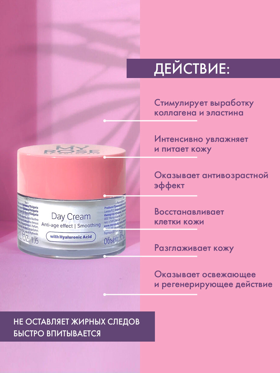 Крем для лица My Rose of Bulgaria Дневной против морщин 50мл (П099-37550)