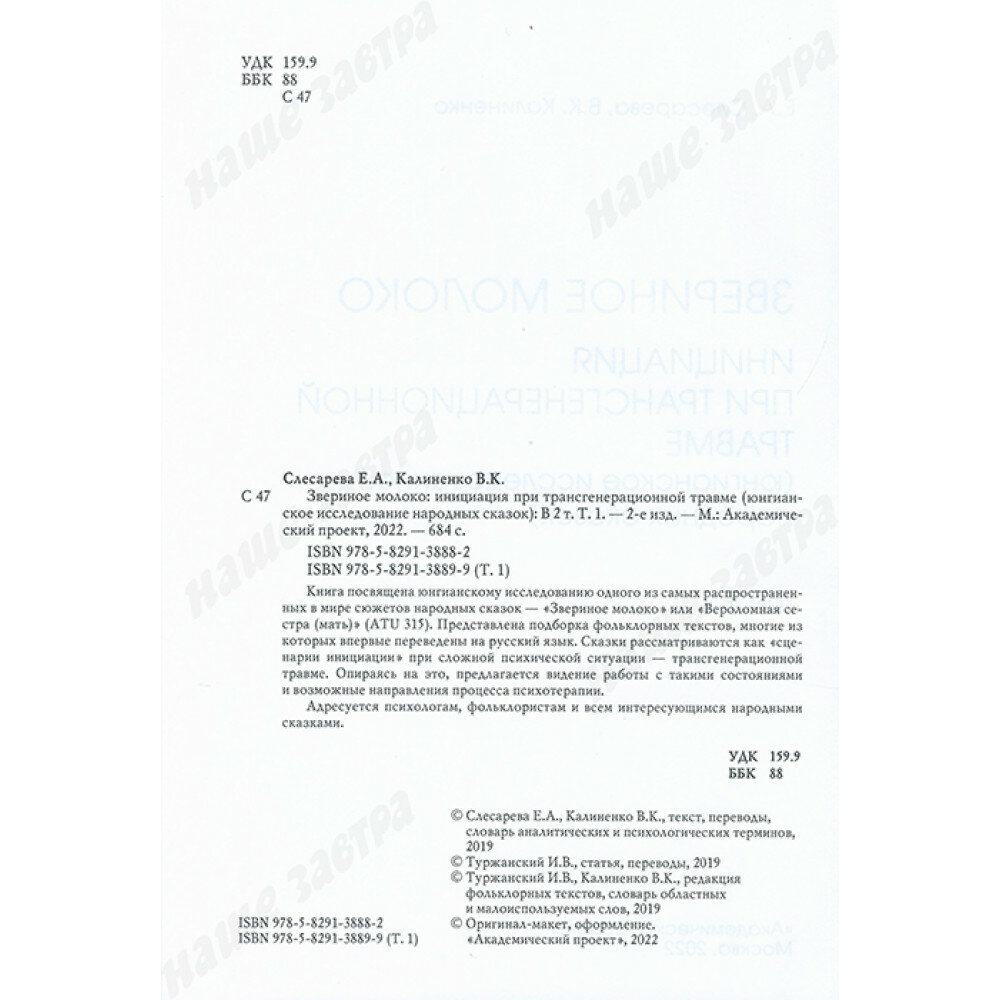 Звериное молоко. Инициация при трансгенерационной травме. В 2-х томах (Слесарева Екатерина Александровна, Калиненко Всеволод Константинович); Академический проект, 2022