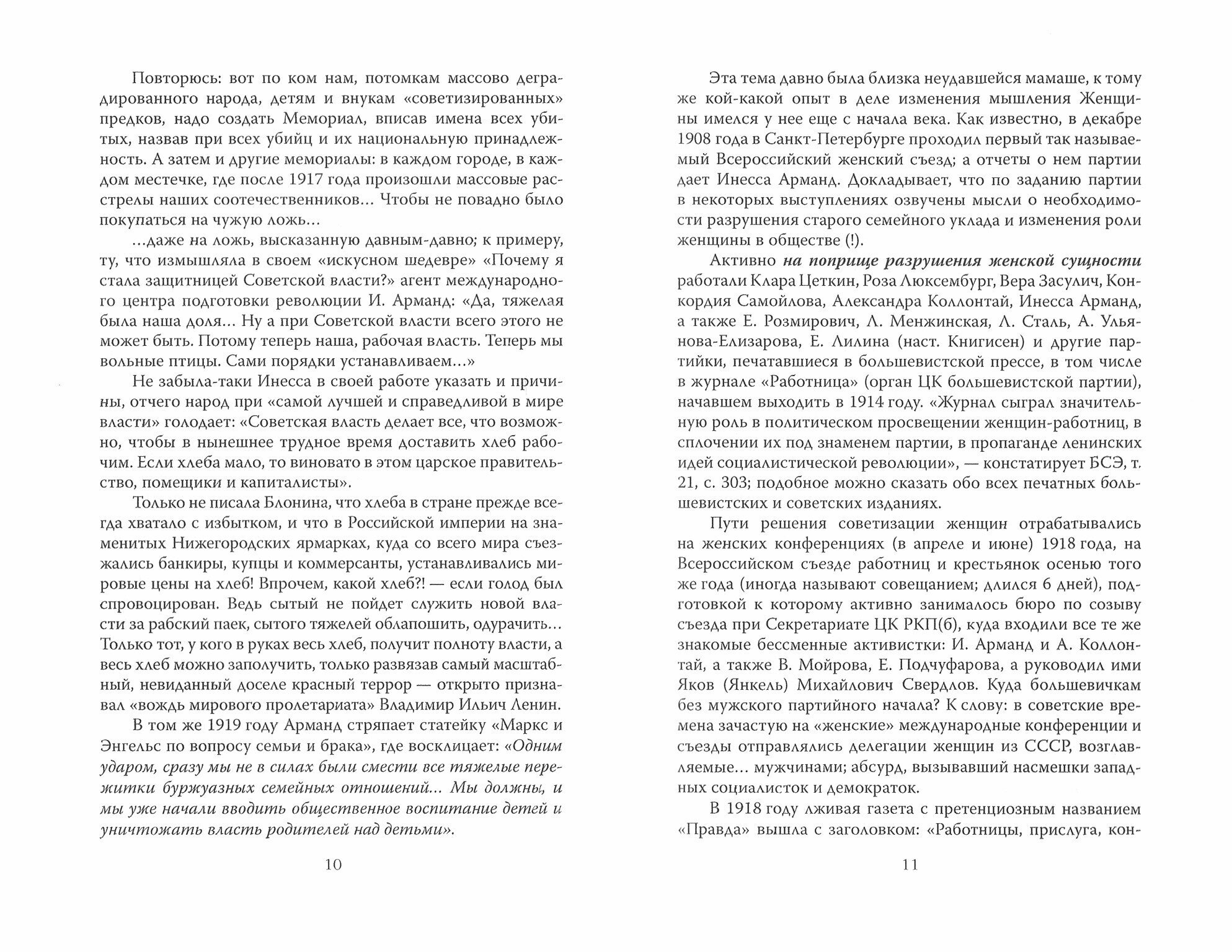 Сама книга и произведения Коллонтай хороши и читаются легко. Но вот введение и заключение некой "Ольги Грейгъ" не то чтобы излишни, а попросту пасквильны. Вновь преинтереснейшие сказки про миллиарды расстрелянных, про обобществление коммунистами жён (как вы эту чепуху только придумываете?), что они [коммунисты], о, боги, предоставляют женщинам свободу в выборе партнёра! Немыслимо! Постоянные оскорбления, культивирование очень и очень сомнительных мифов и лживые трактовки. Особенно насмешило про роман Арманд и Ленина.