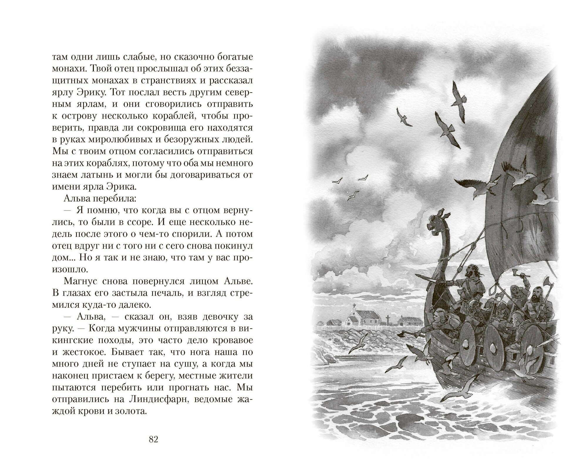 Главная героиня – сильная и смелая девчонка. И это прекрасно. Во-первых, потому что Том Сойер и Геккельбери Финн – это, конечно, классные ребята, но в этих книгах девочки показаны робкими, пугливыми и безынициативными. Поэтому я бы хотела, чтобы мои дочки видели и других женских персонажей. А во-вторых, среди викингов действительно были решительные и властные женщины, они часто сами выбирали себе мужа, вели финансовые дела, даже могли быть жрецами и воительницами. И я очень рада, что в подростковой литературе наконец появилась такая героиня – Альва, отважная, умная девочка, расследующая исчезновение людей с острова (да-да, это еще и детектив). Реалии викингов прописаны увлекательно и правдоподобно, а рунические загадки можно попробовать разгадать самостоятельно. Прочитайте, эта книга однозначно заслуживает внимания.