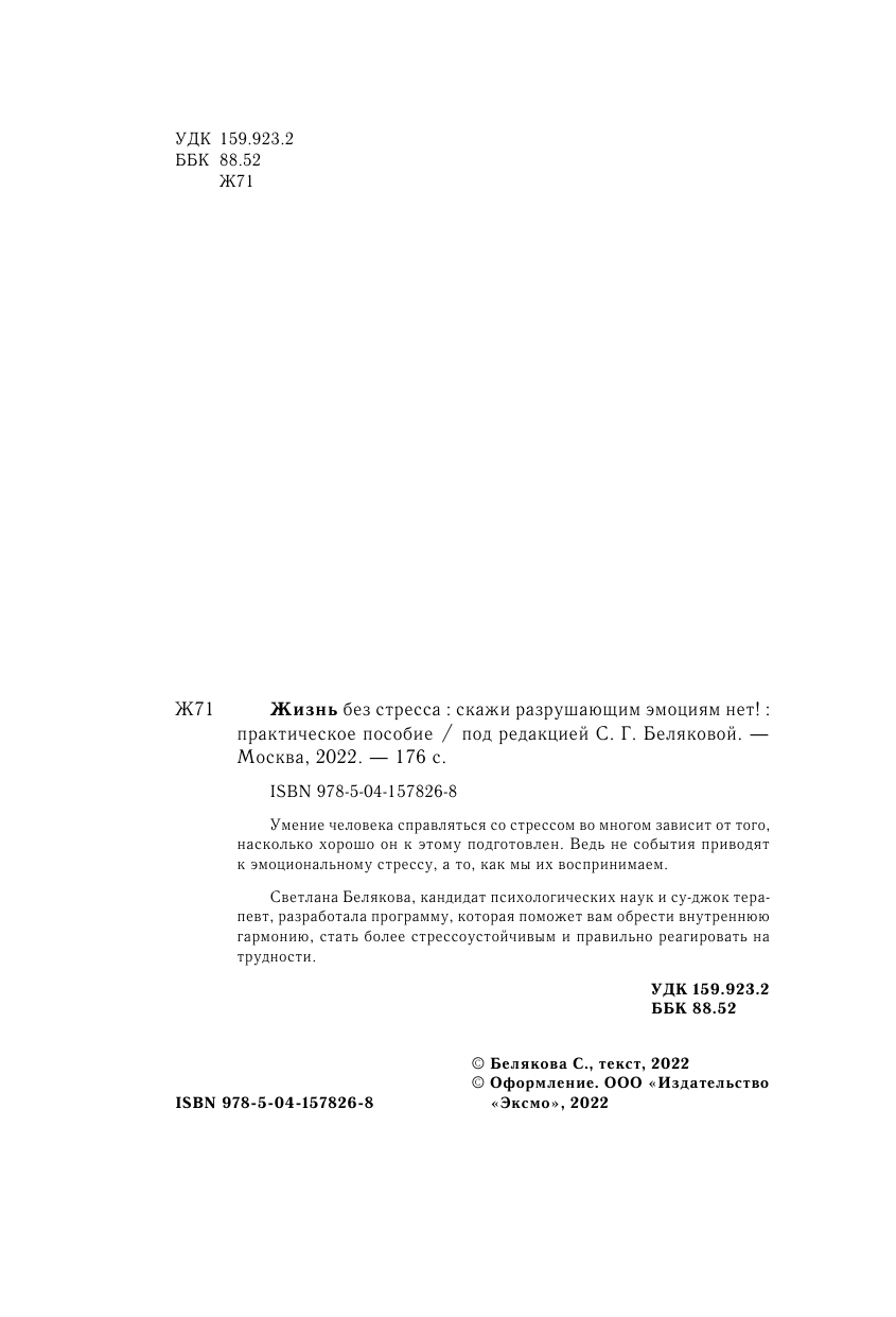 Жизнь без стресса. Скажи разрушающим эмоциям НЕТ! (Белякова Светлана Геннадьевна); ООО "Издательство "Эксмо", 2021