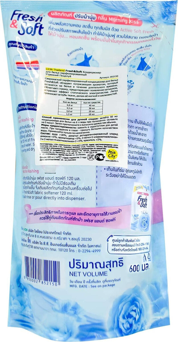 Кондиционер для белья Lion Thailand Fresh&Soft Утренний Поцелуй 600мл Lion Corporation