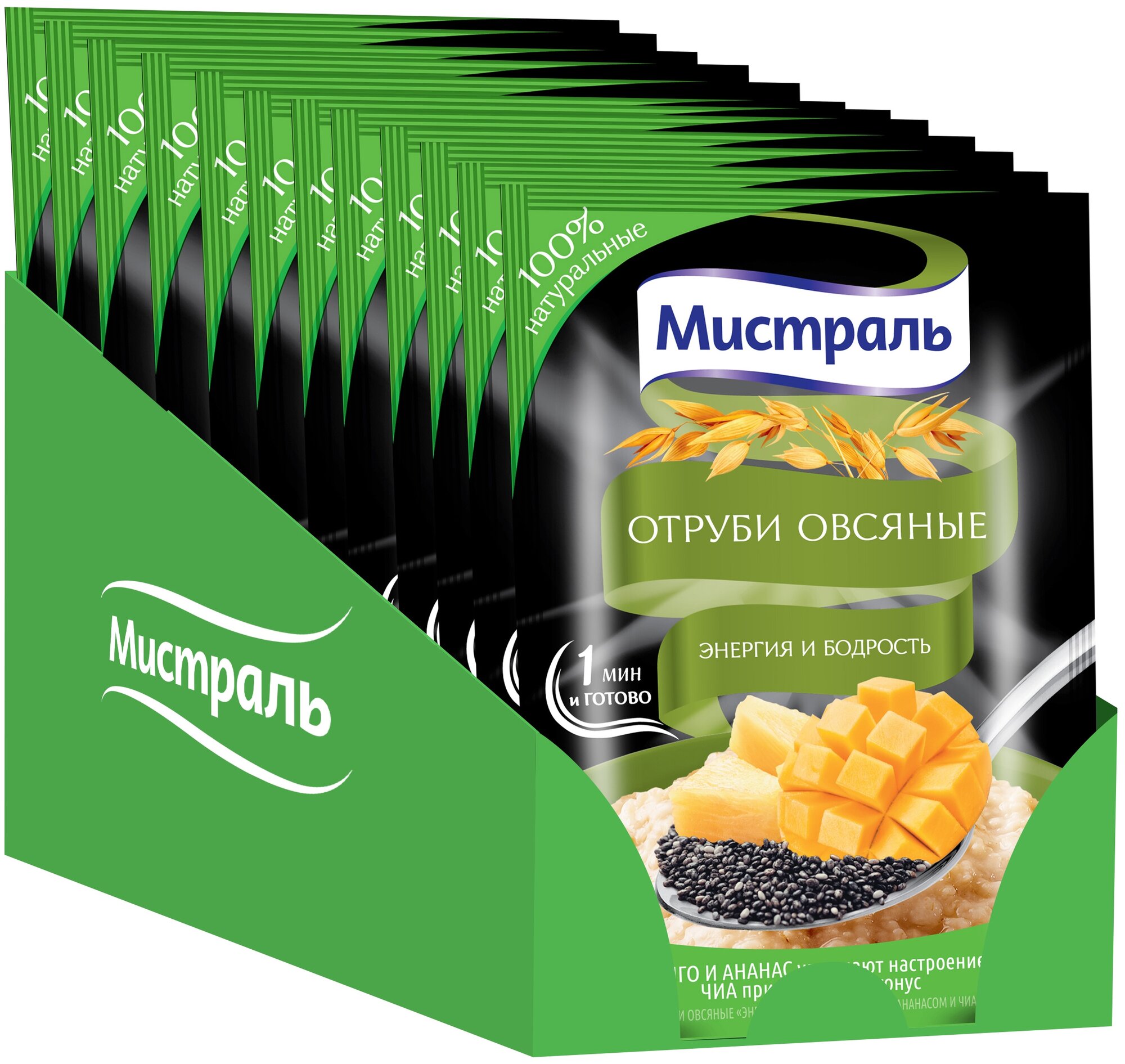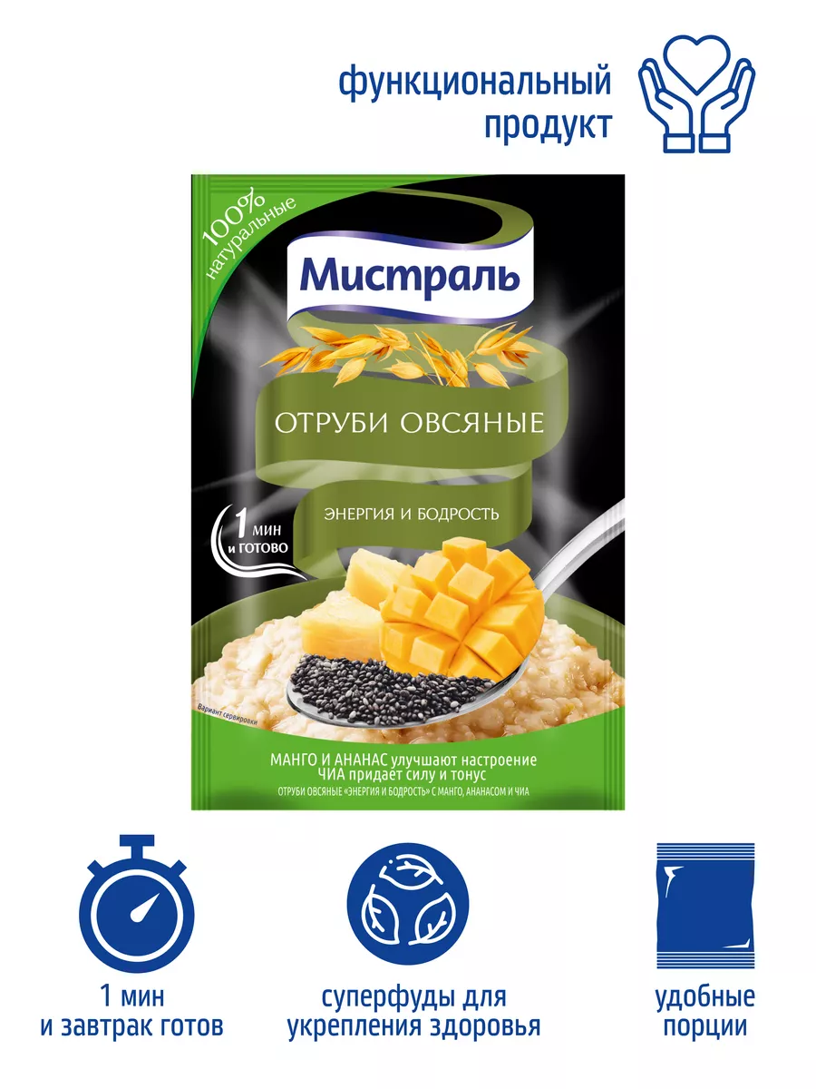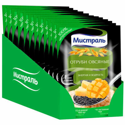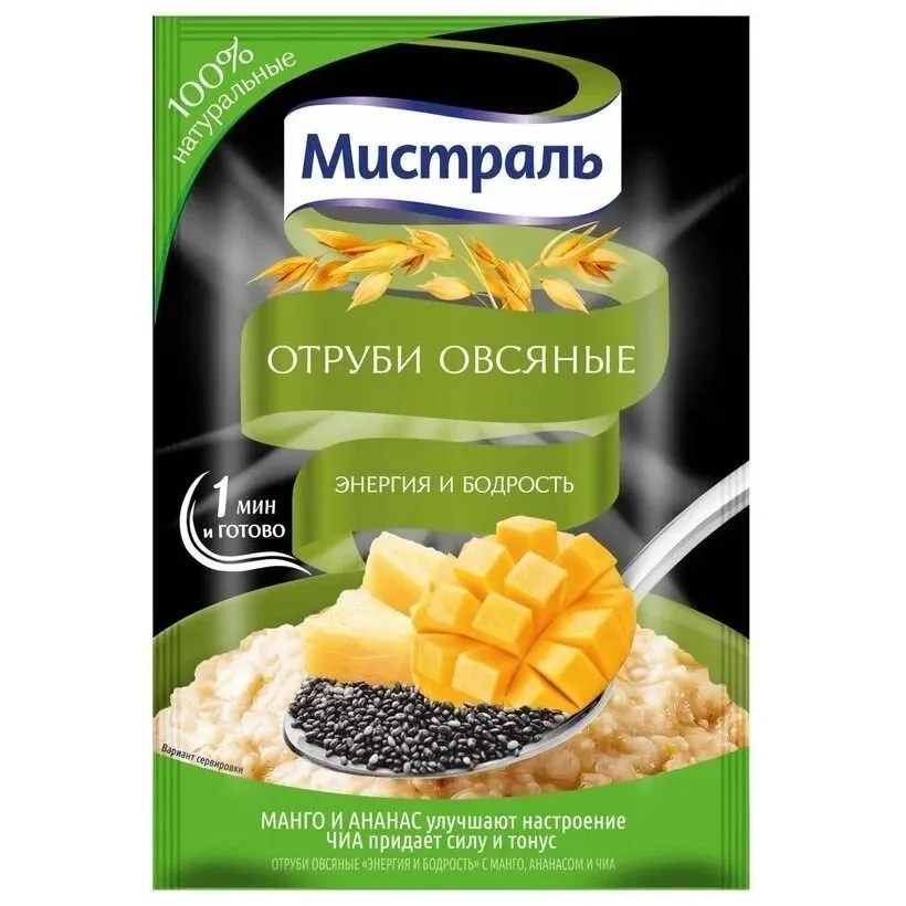Отруби Мистраль овсяные Энергия и бодрость Манго-Ананас-Чиа 30г Полинка