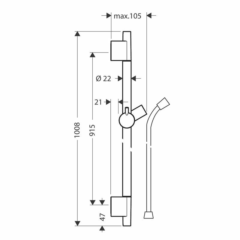 Душевая штанга Hansgrohe Unica S Puro 28631670 с держателем для ручного душа и душевым шлангом.