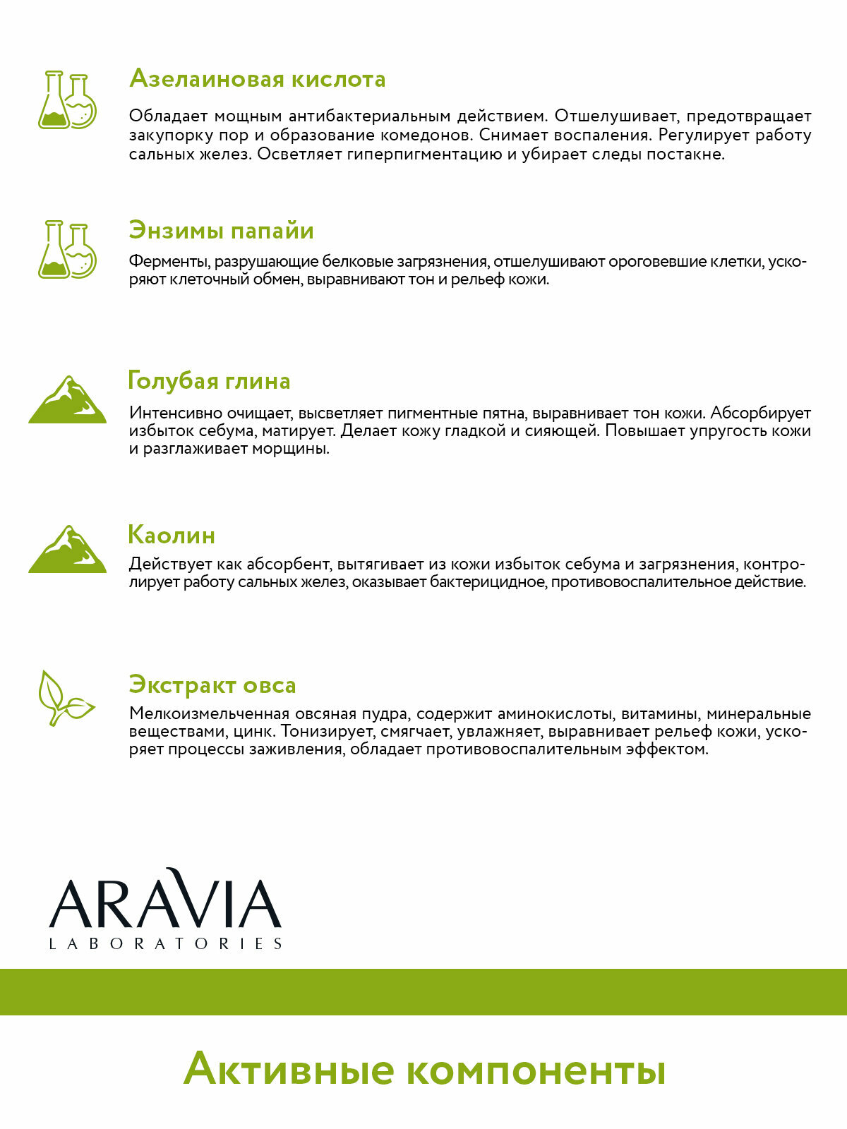 | Активные компоненты | энзимы, глина, азелаиновая кислота, экстракт овса |