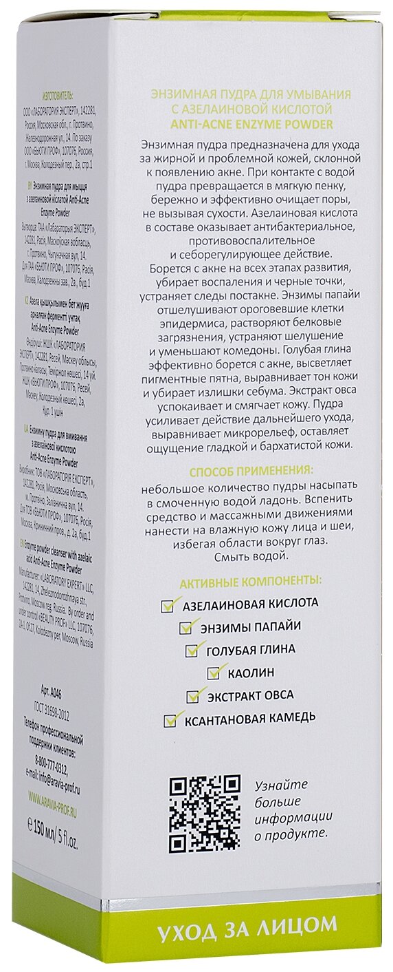 Aravia Laboratories Энзимная пудра для умывания с азелаиновой кислотой Anti-Acne Enzyme Powder 150 мл (Aravia Laboratories ) (ЭХ99989421729)