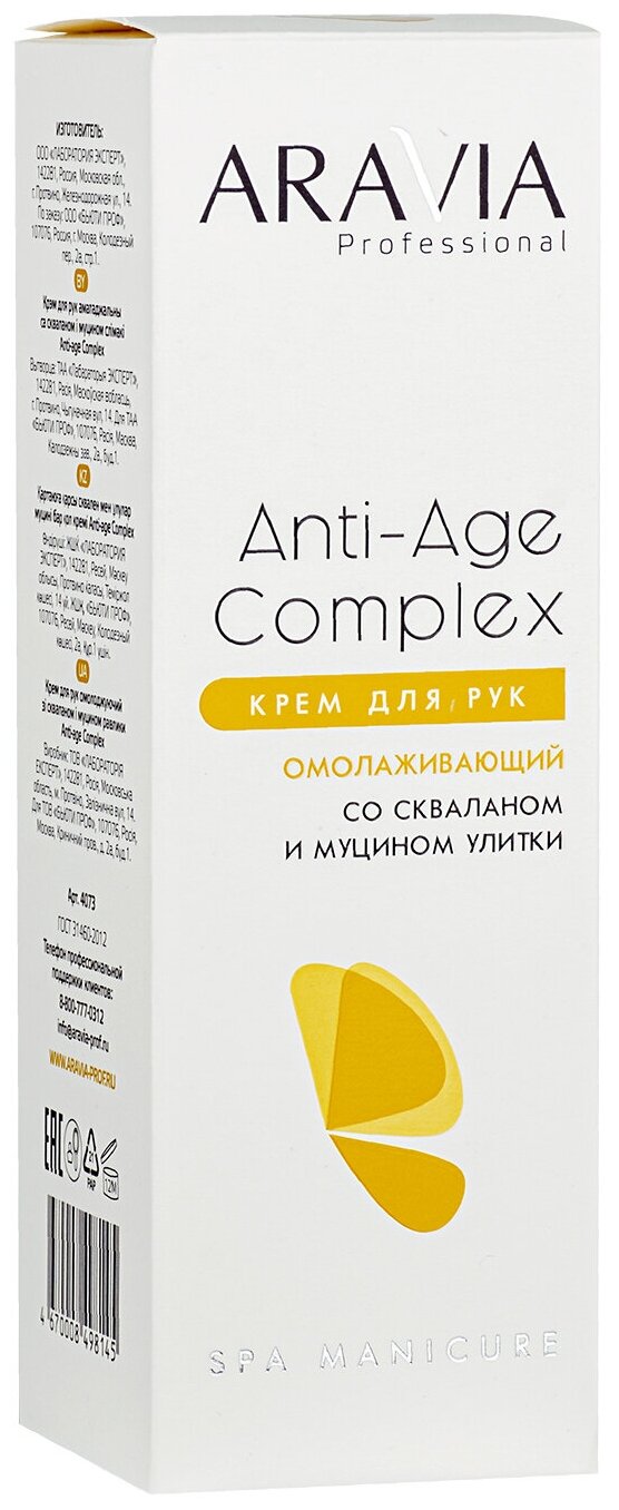 Aravia Professional Омолаживающий крем для рук Anti-Age Complex Cream со скваланом и муцином улитки 150 мл (Aravia Professional ) (ЭХ99989421944)
