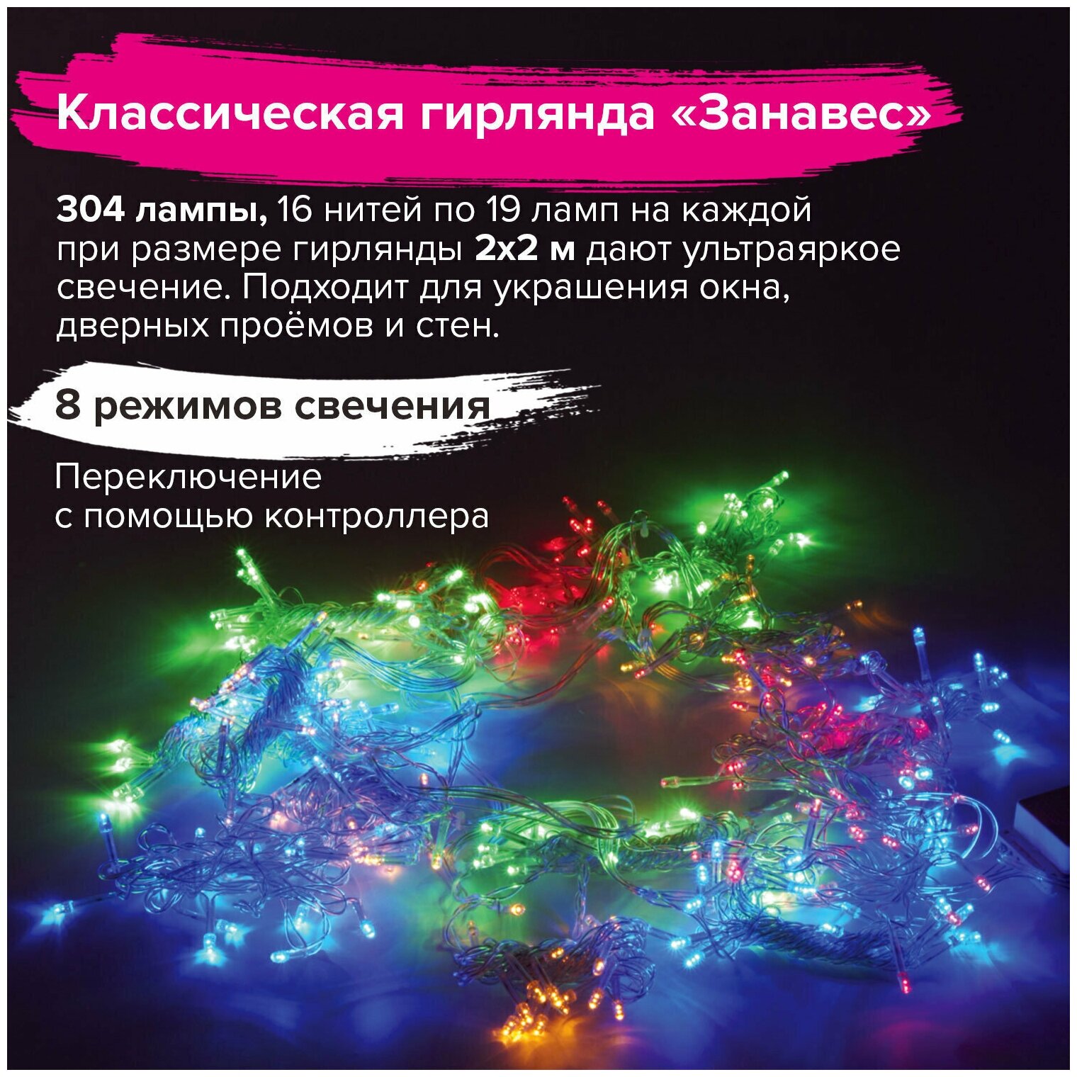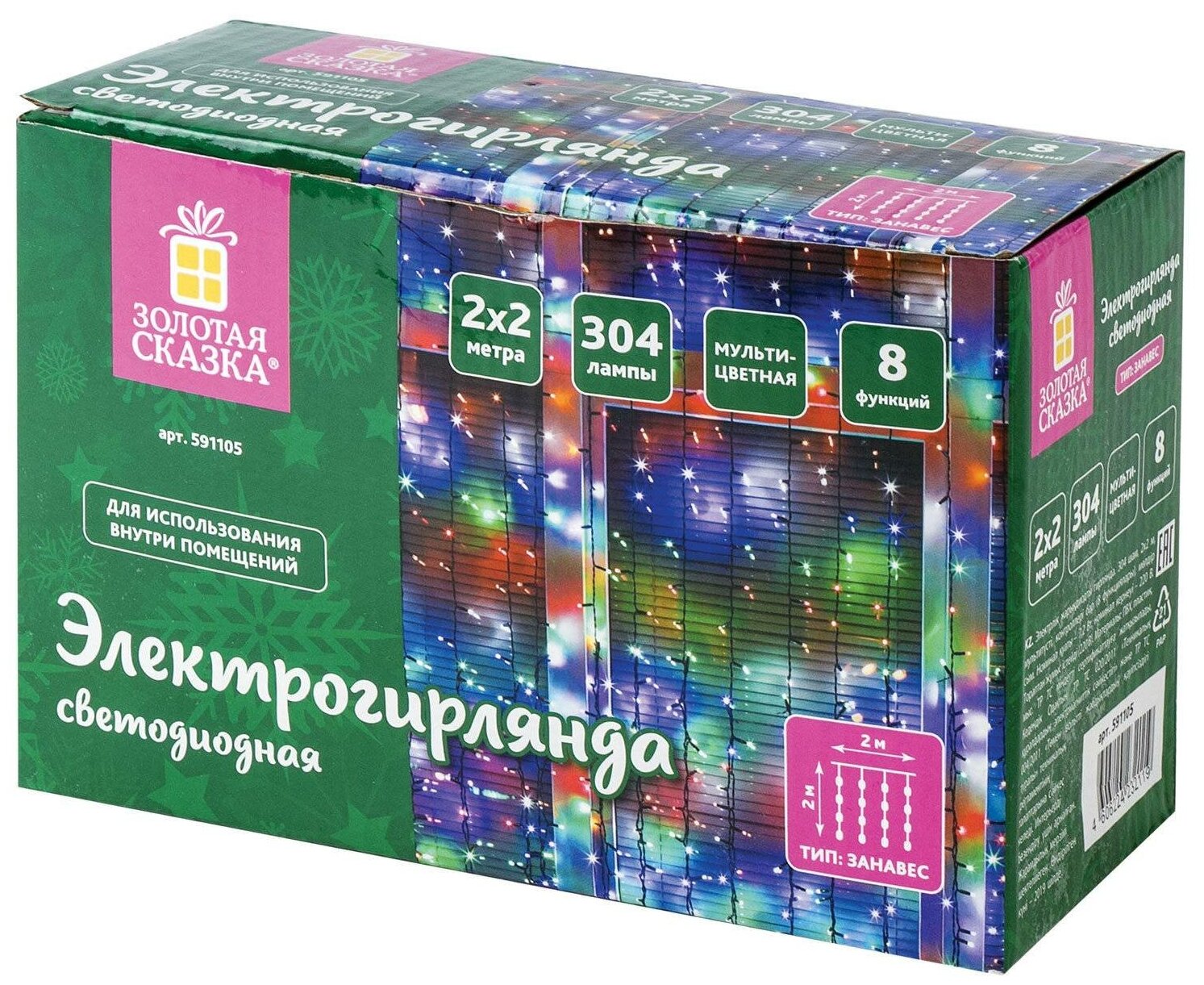 | Комплектация | Гирлянда светодиодная ЗАНАВЕС НА ОКНО, 3х2 м, 306 ламп, холодный белый, ЗОЛОТАЯ СКАЗКА, 591333 |