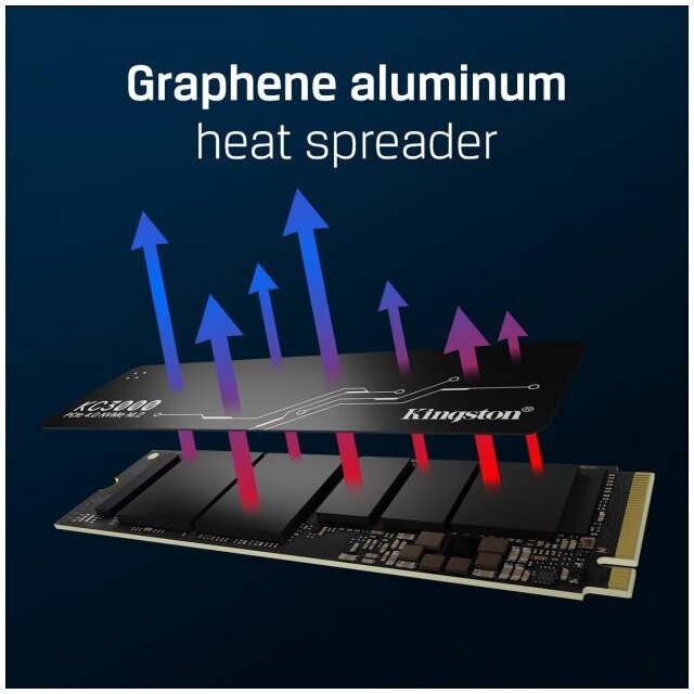 Накопитель SSD M.2 2280 Kingston KC3000 2TB PCI-E 4.0 x4 NVMe 3D TLC 7000/7000MB/s IOPS 1000K/1000K MTBF 2M 16 PBW graphen heatsink SKC3000D/2048G