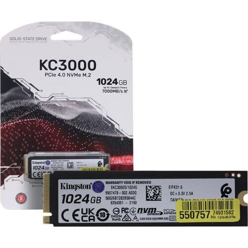 Сервис сравнения цен СкидкаГИД предлагает сравнить цены на товар «Накопитель SSD M.2 2280 Kingston KC3000 1TB PCI-E 4.0 x4 NVMe 3D TLC 7000/6000MB/s IOPS 900K/1000K MTBF 2M 800 TBW graphen heatsink SKC3000S/1024G»