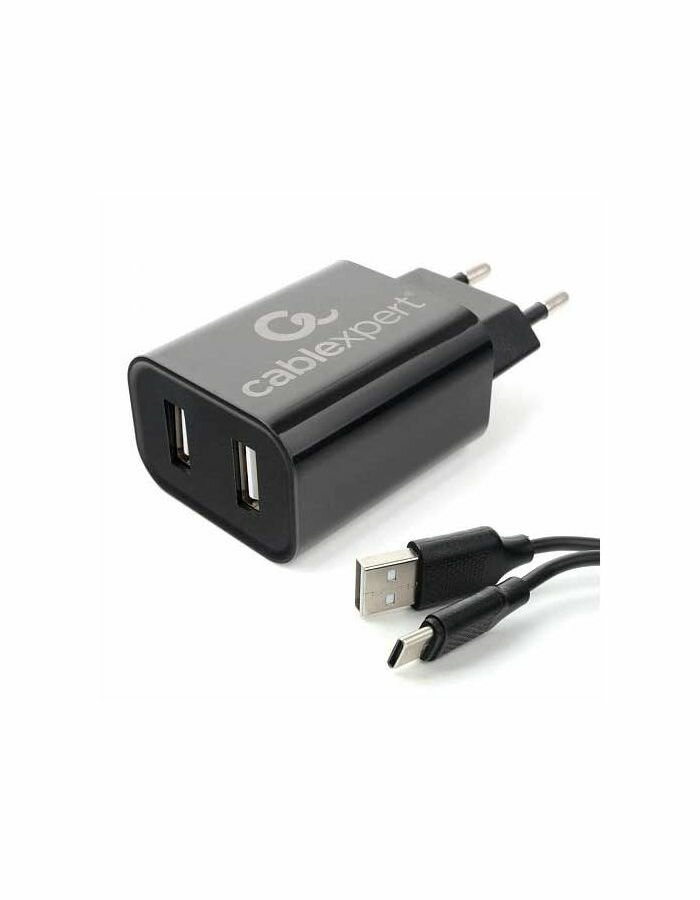 Зарядное устройство сетевое Cablexpert 100/220V-5V USB 2 порта 2.4A черное с кабелем MP3A-PC-37