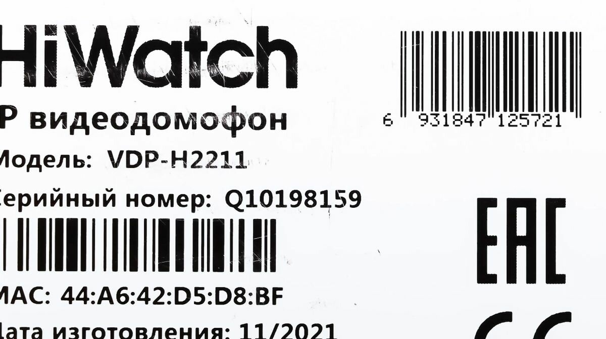 | Руководство пользователя | HiWatch VDP-H2211 |