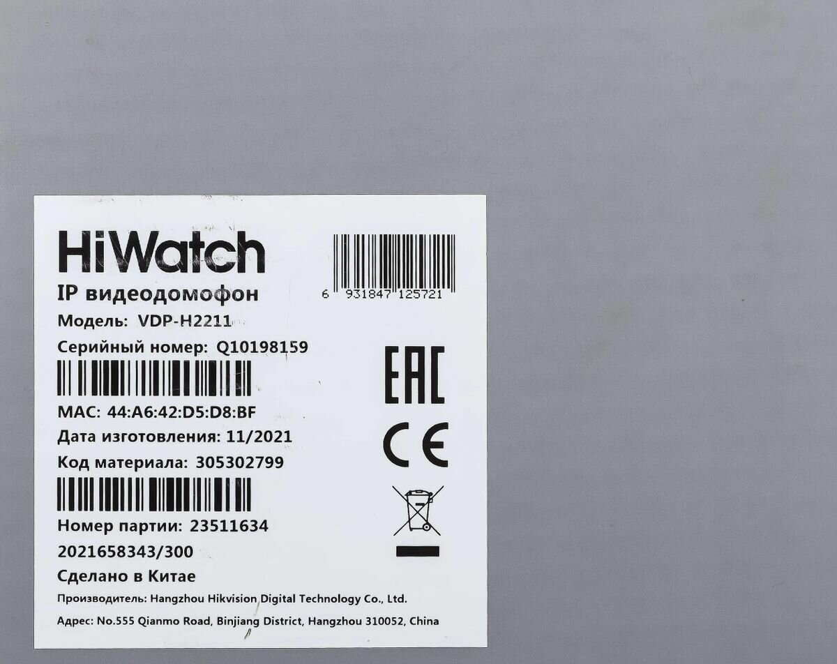 | Комплектация | IP-видеодомофон, документация |