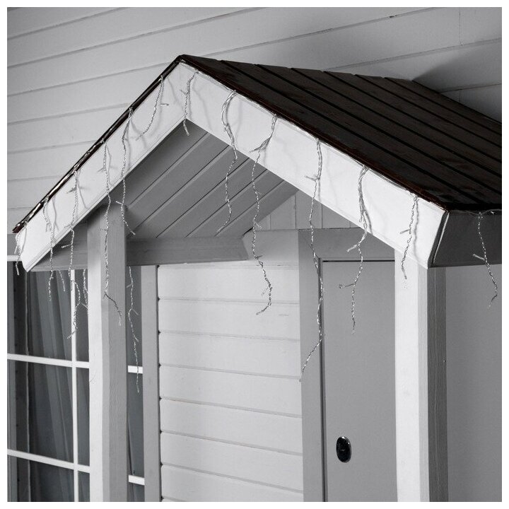 Гирлянда работает от сети. 18 мигающих светодиодов (холодный свет). Блок питания приобретается отдельно. Электрогирлянда безопасна, напряжение 220 В преобразовывается в низковольтное напряжение 24 В с помощью блока питания. Есть возможность последовательного соединения до 1500 LED. Режим работы свечение. Может использоваться как для внешнего, так и для внутреннего декорирования.