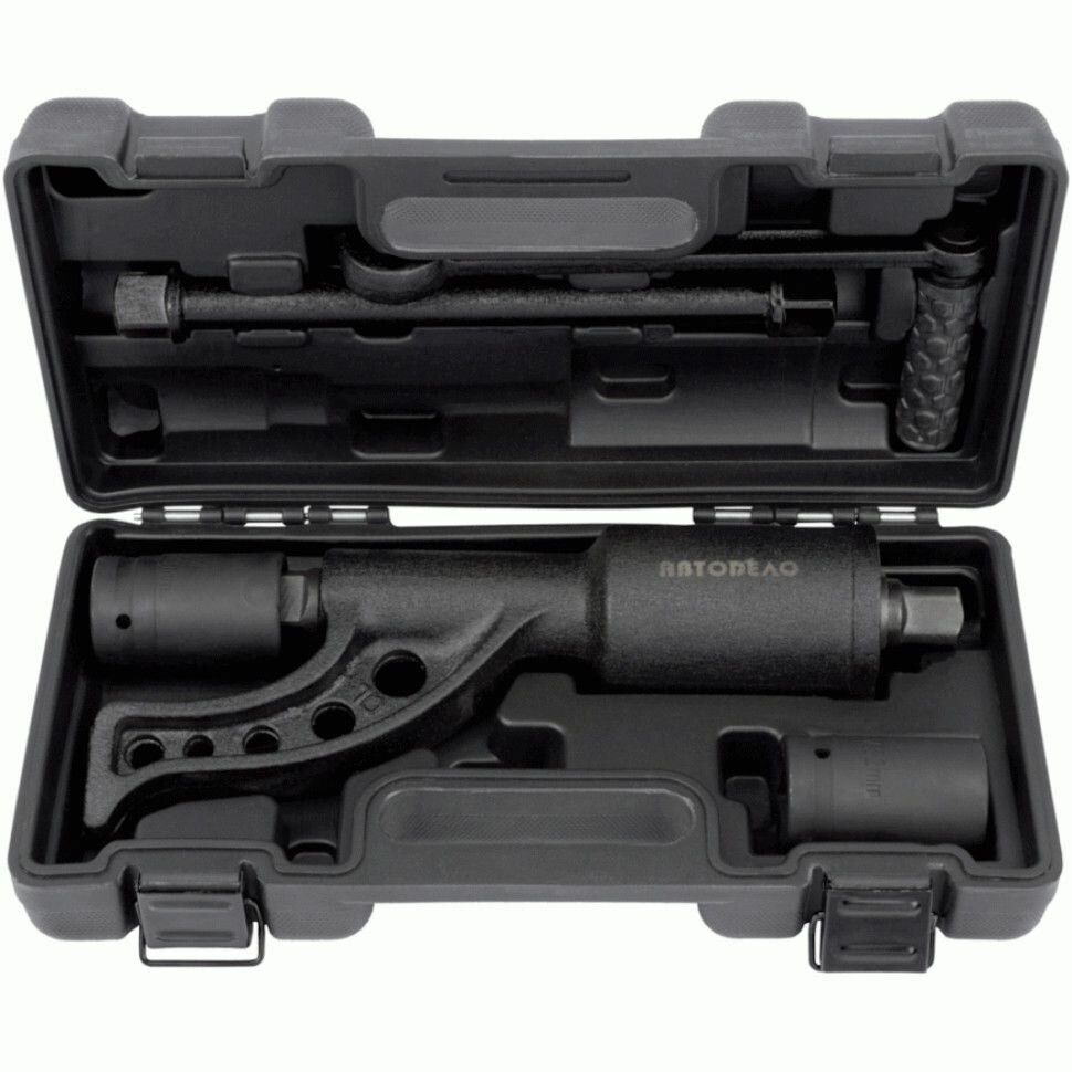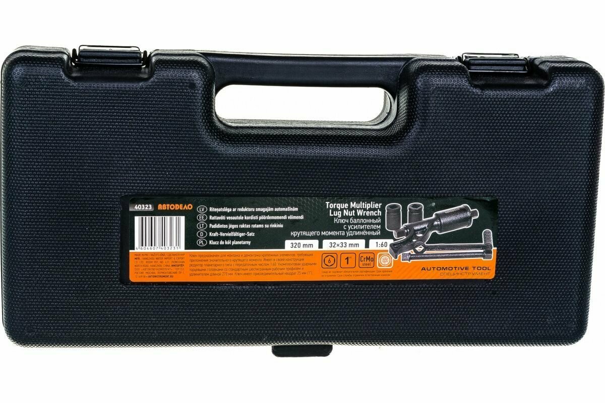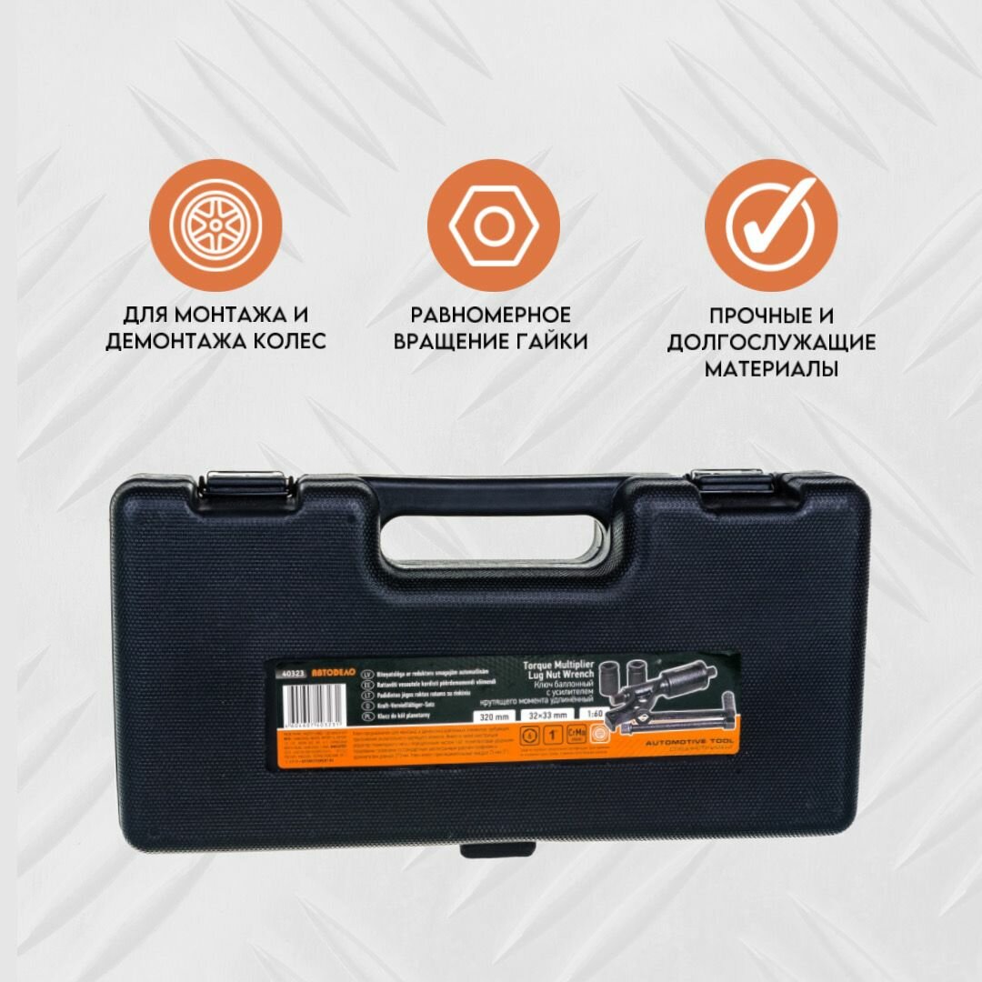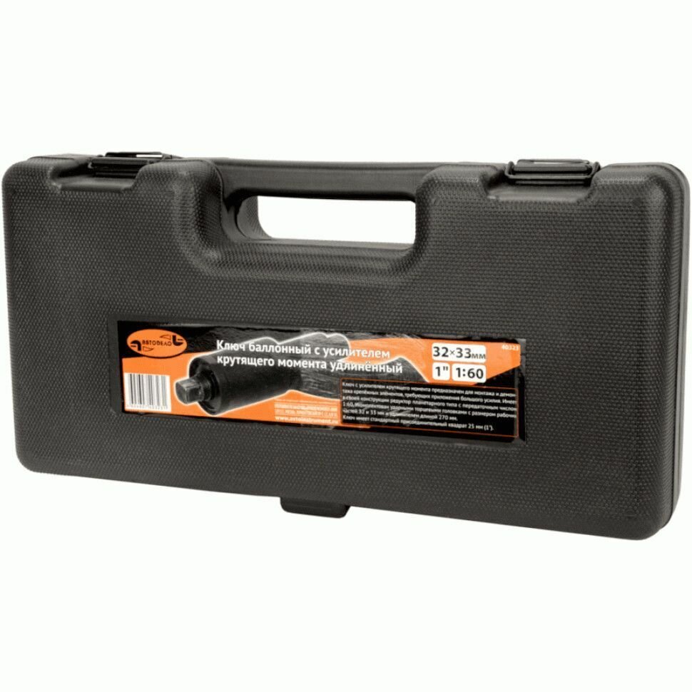 Баллонный ключ 32х33 с УКМ удлиненный АвтоDело 40323 (20694) Гайковерт Баллонный ключ 32х33 с УКМ удлиненный АвтоDело 40323 (20694) применяется для монтажа и демонтажа колес автомобилей. При помощи ключа баллонного с усилителем крутящего момента вращение гайки происходит равномерно, медленно, без рывков и толчков, поэтому исключается вероятность поломок шпилек и болтов.Мультипликатор значительно облегчает работу по снятию и установке колес, и, что немаловажно, снижает уровень утомляемости.Имеет планетарный редуктор с изменяемым передаточным числом - 1:60 для силового вращения.Размер присоединительного квадрата 1 (25мм).Съёмный рабочий вал используется как дополнительный удлинитель.Максимальный момент силы 3600Nm.Укомплектован торцевыми ударными головками 32, 33 мм. Технические характеристики баллонного ключа Автоdело 40323 (20694) Max усилие, Нм - 3600 Max размер головки, мм - 33 Размер посадки - 1 дюйм Тип крепления - присоединительный квадрат Передаточное число - 1:60 Наличие кейса - да Общая длина, мм - 320 Назначение для грузовых автомобилей Вес брутто, кг-8