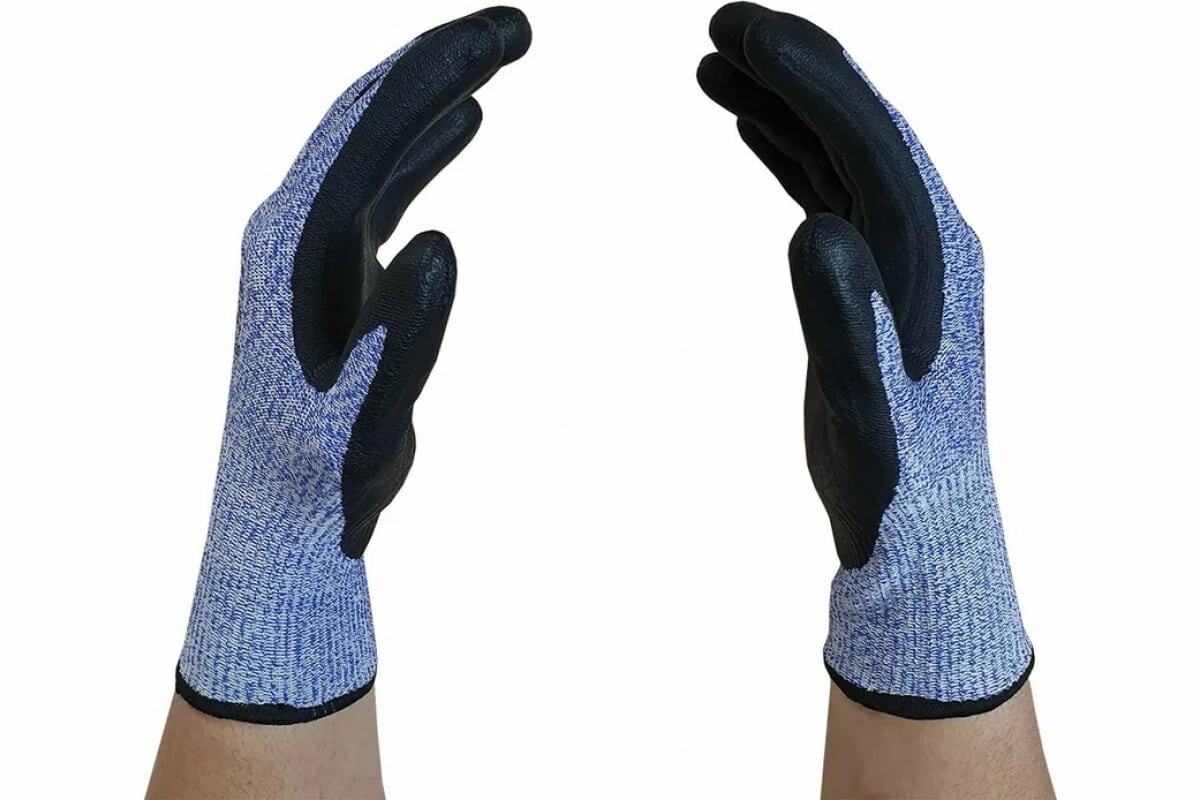 Перчатки для защиты от порезов Scaffa DY1350FRB-B/BLK используются при строительных работах, работе с режущим инструментом, стеклом и металлом. Бесшовная основа из нейлона мягко облегает руку и обеспечивает высокую чувствительность. Высокий класс вязки 18 петель создает высокую плотность основы. Волокно HPPE и стекловолокно, добавленные в основу, гарантируют максимальную износостойкость и высокую устойчивость к порезам. Плотное покрытие из вспененного нитрила дает дополнительную защиту от пореза и прокола, а также надежный захват даже влажных и масляных поверхностей. Удлиненный манжет мягко облегает запястье защищая его и предотвращает попадание мусора и вредных веществ внутрь перчатки.