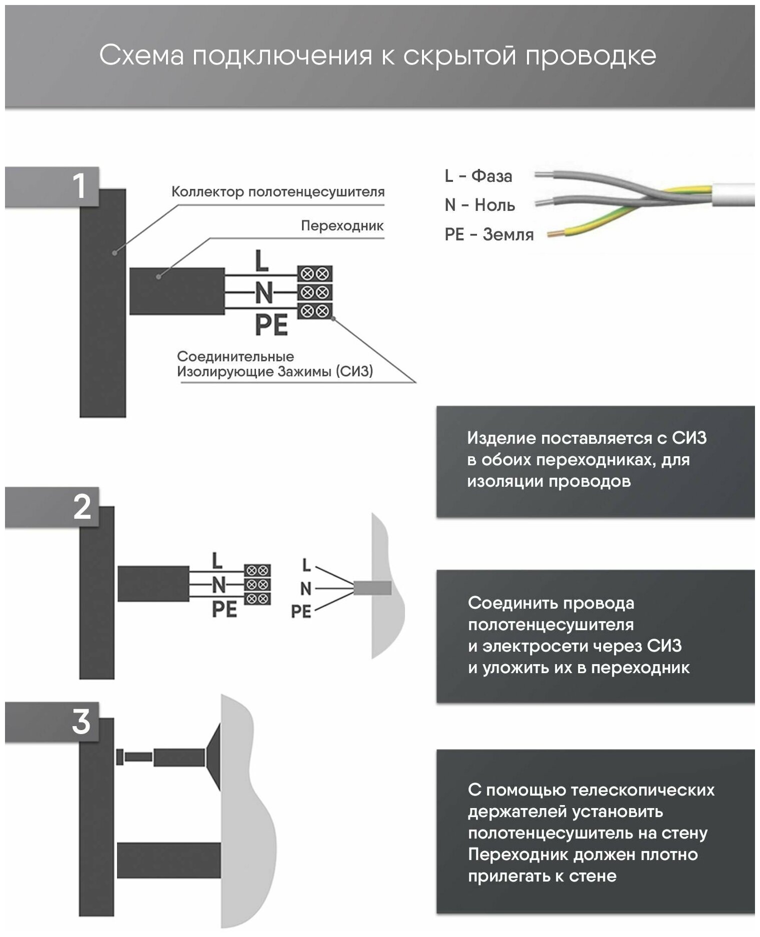 | Подключение | скрытое электрическое соединение, электропровод с вилкой |