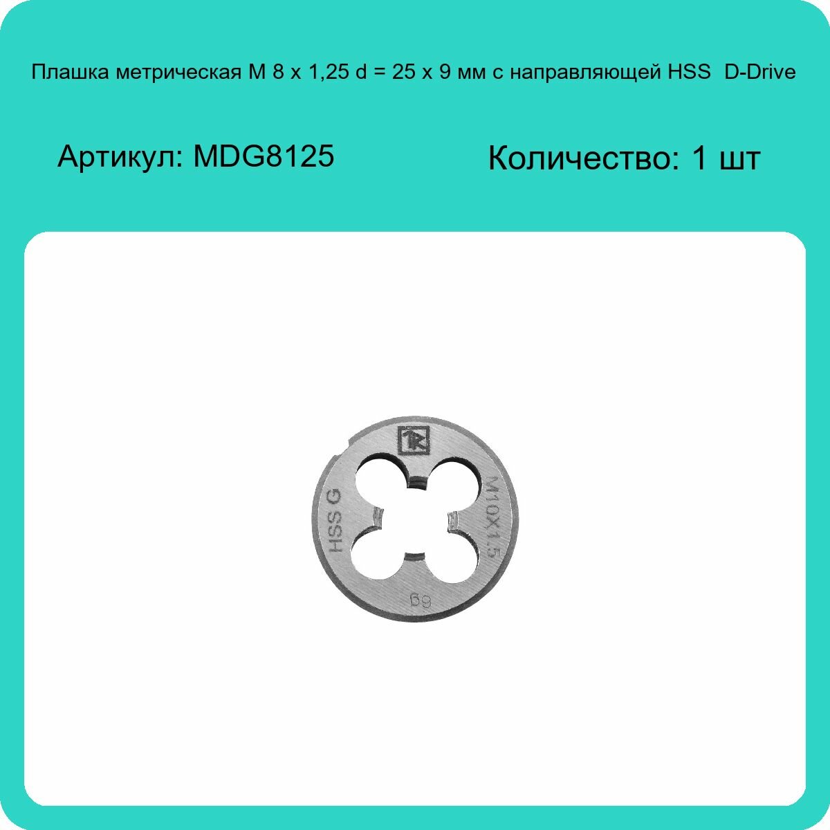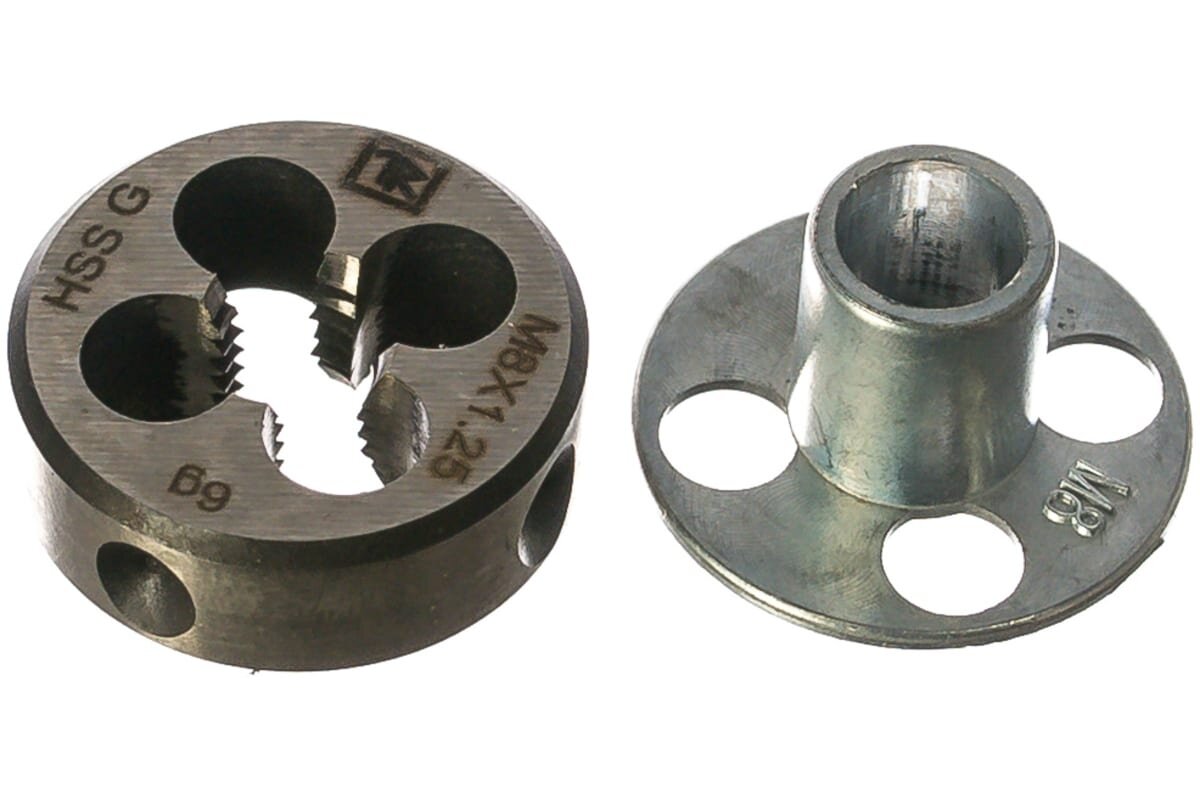 Круглая ручная плашка с направляющей в наборе М8х1.25, HSS, Ф25х9 мм Thorvik D-DRIVE MDG8125 52863 удобна для нарезания наружной резьбы. Инструмент оснащен несколькими зонами резки, что обеспечивает высокое качество обработки металлических заготовок.
