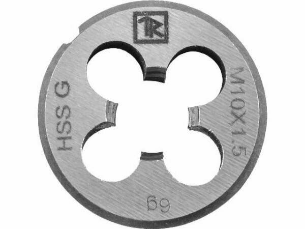 Круглая ручная плашка с направляющей в наборе М10х1.5, HSS, Ф25х9 мм Thorvik D-DRIVE MDG1015 52864 удобна для нарезания наружной резьбы. Инструмент оснащен несколькими зонами резки, что обеспечивает высокое качество обработки металлических заготовок.