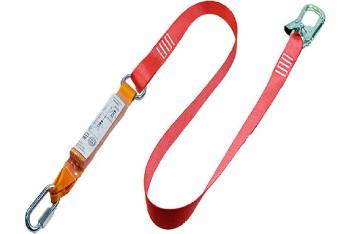 Строп - включает в себя с амортизатор рывка, способного поглощать нагрузку возникающую при падении с высоты. Применяется совместно со страховочной привязью при проведении высотно- строительных, ремонтных и восстановительных работ.