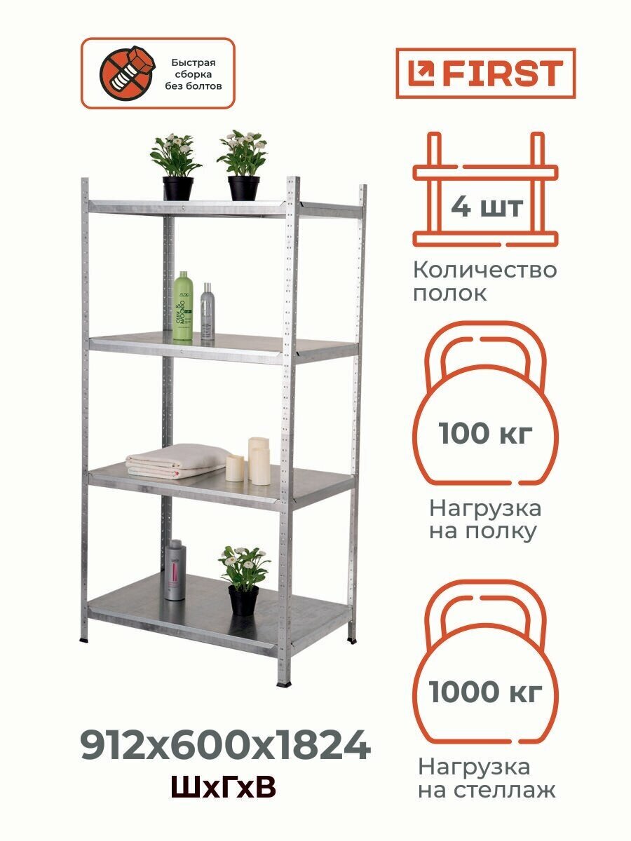 Стеллаж HIT создается из высокопрочной оцинкованной стали, что гарантирует надежность и долговечность конструкции. Уникальная конструкция зацепов и усилителей обеспечивает необходимый и гарантированный уровень нагрузок для стеллажей. Стеллаж шириной 912мм и высотой 1824мм подойдет для любых помещений - офис, загородный дом, гараж, балкон. Все элементы стеллажа цельногнутые, без применения сварки, что исключает возникновение возможных очагов коррозии. Нагрузка на полку 100кг. На стеллаж до1000кг.